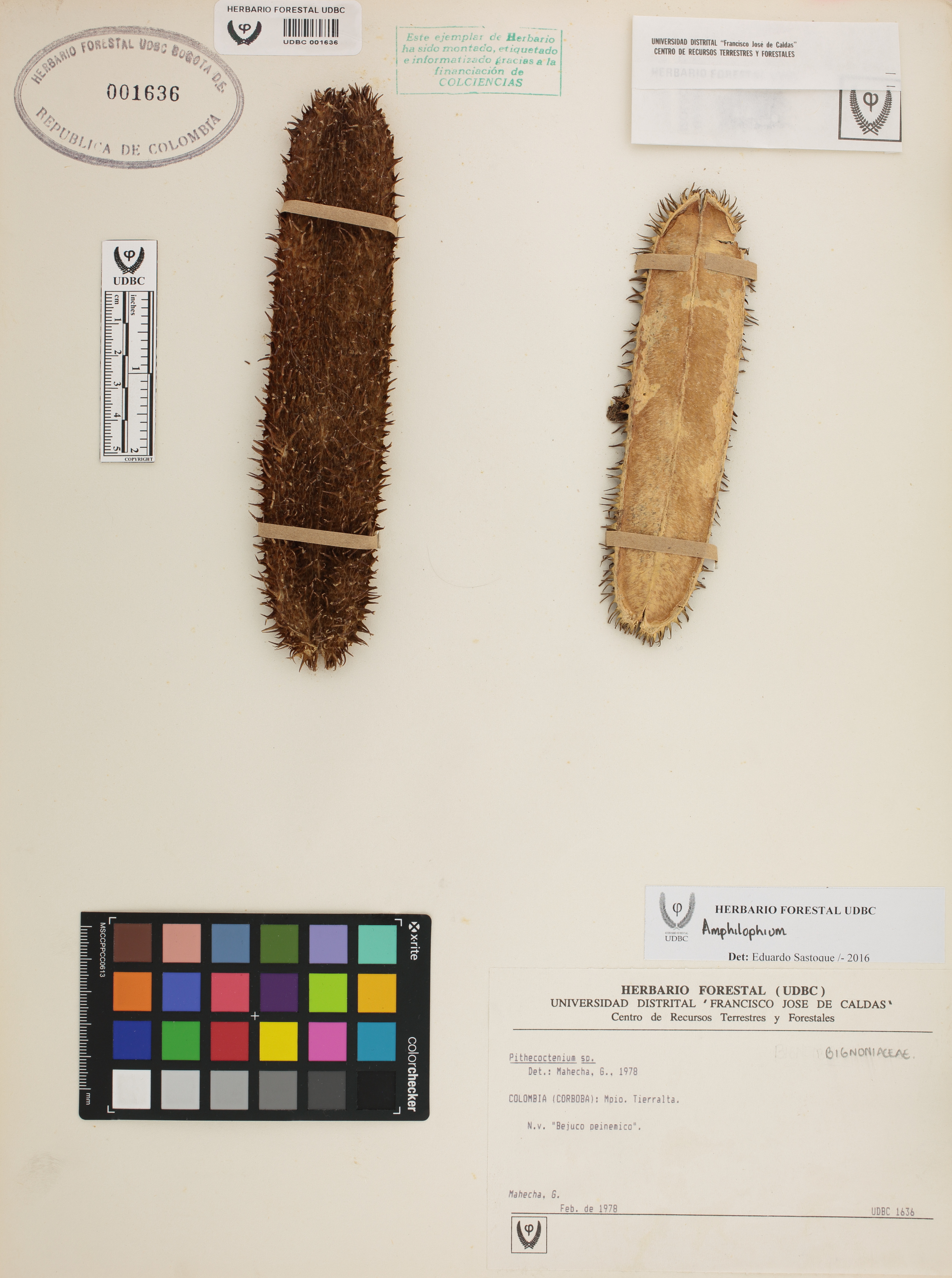 Fotografía del ejemplar Mahecha, G., determinado como Amphilophium sp. en el año 2016