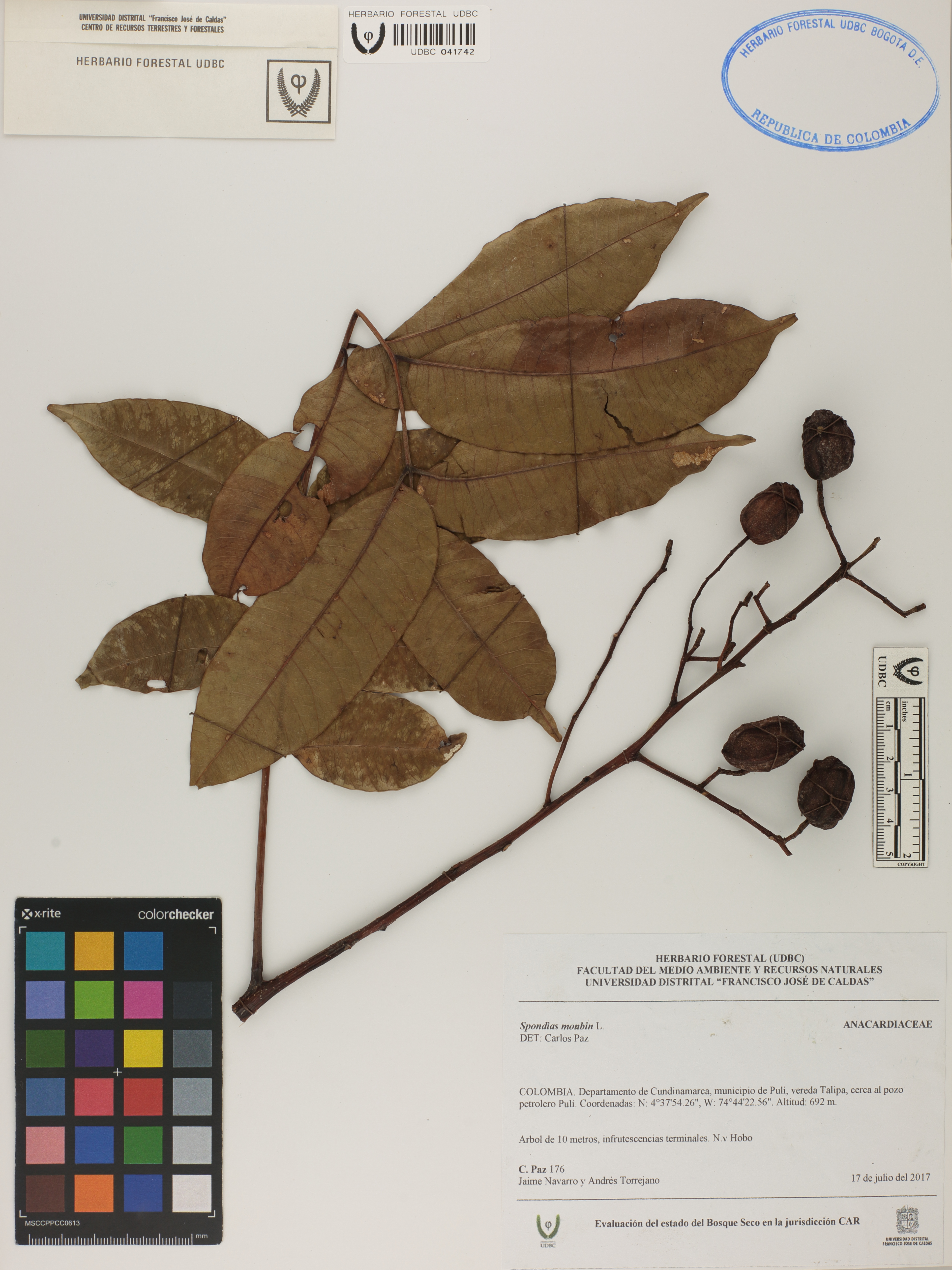 Fotografía del ejemplar Paz, C. 176, determinado como Spondias mombin
