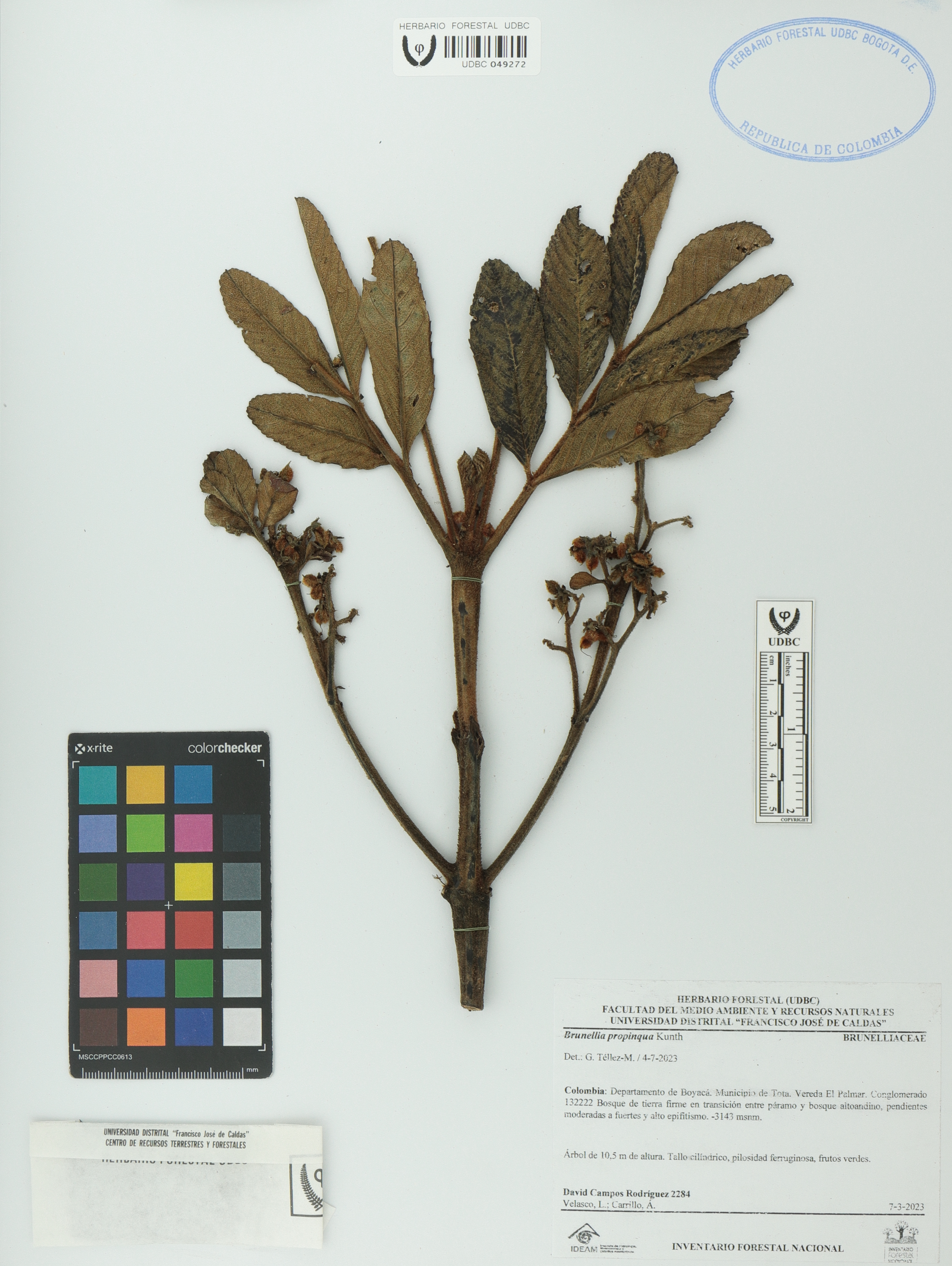 Fotografía del ejemplar Campos-Rodríguez, D. 2284, determinado como Brunellia propinqua en el año 2023