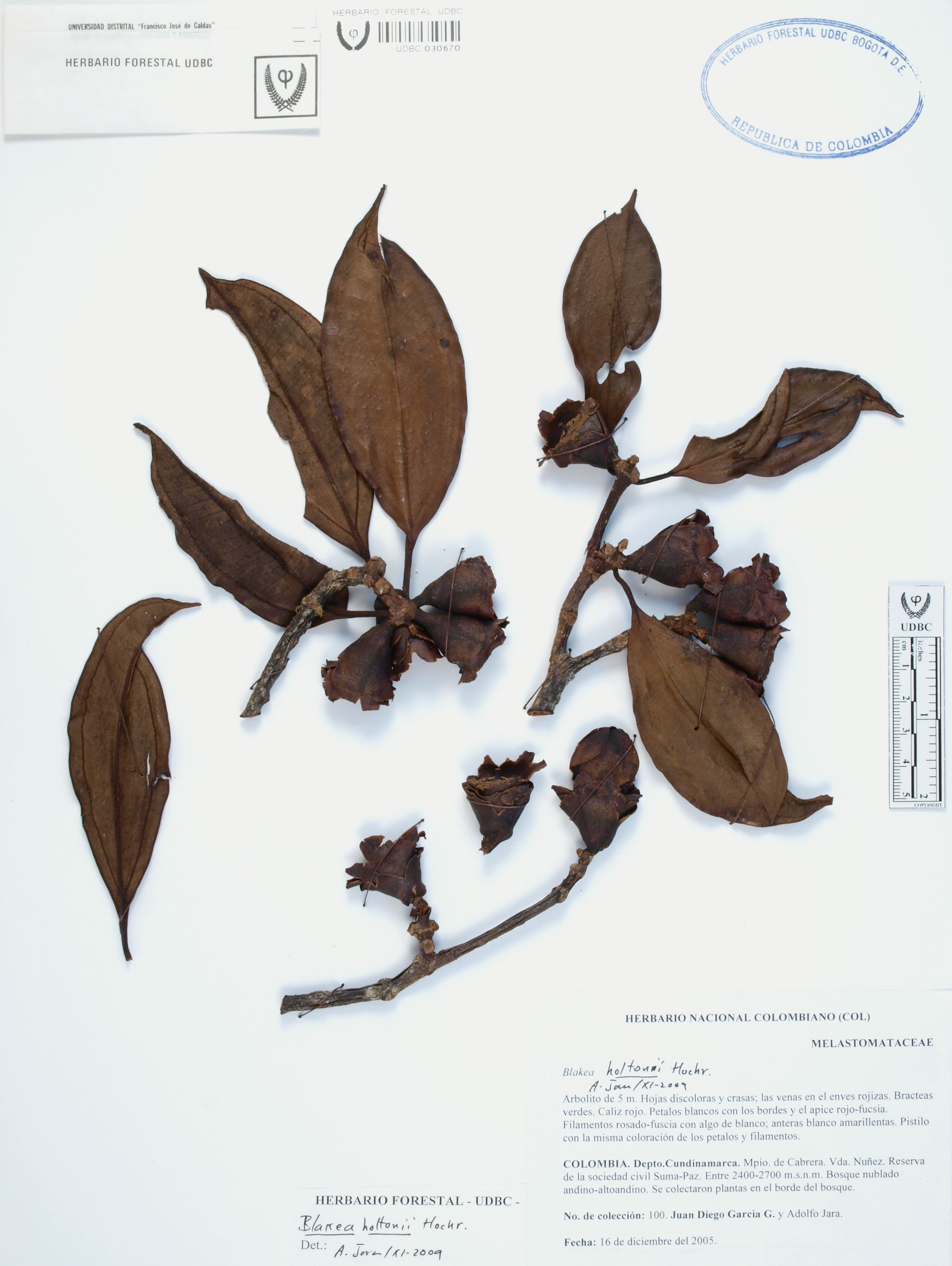 Fotografía del ejemplar García, J. 100, determinado como Blakea holtonii en el año 2009