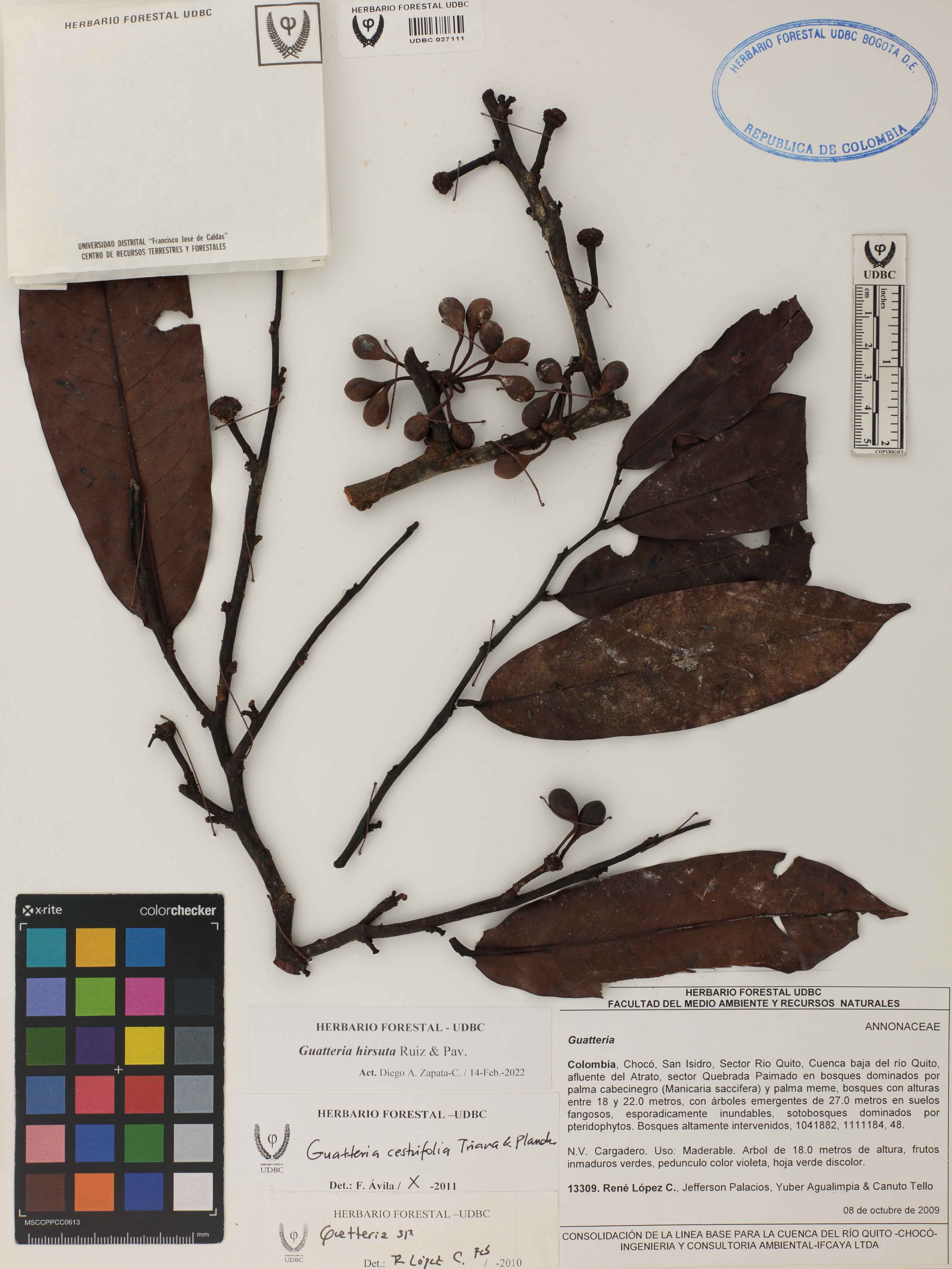 Fotografía del ejemplar López, R. 13309, determinado como Guatteria hirsuta en el año 2011