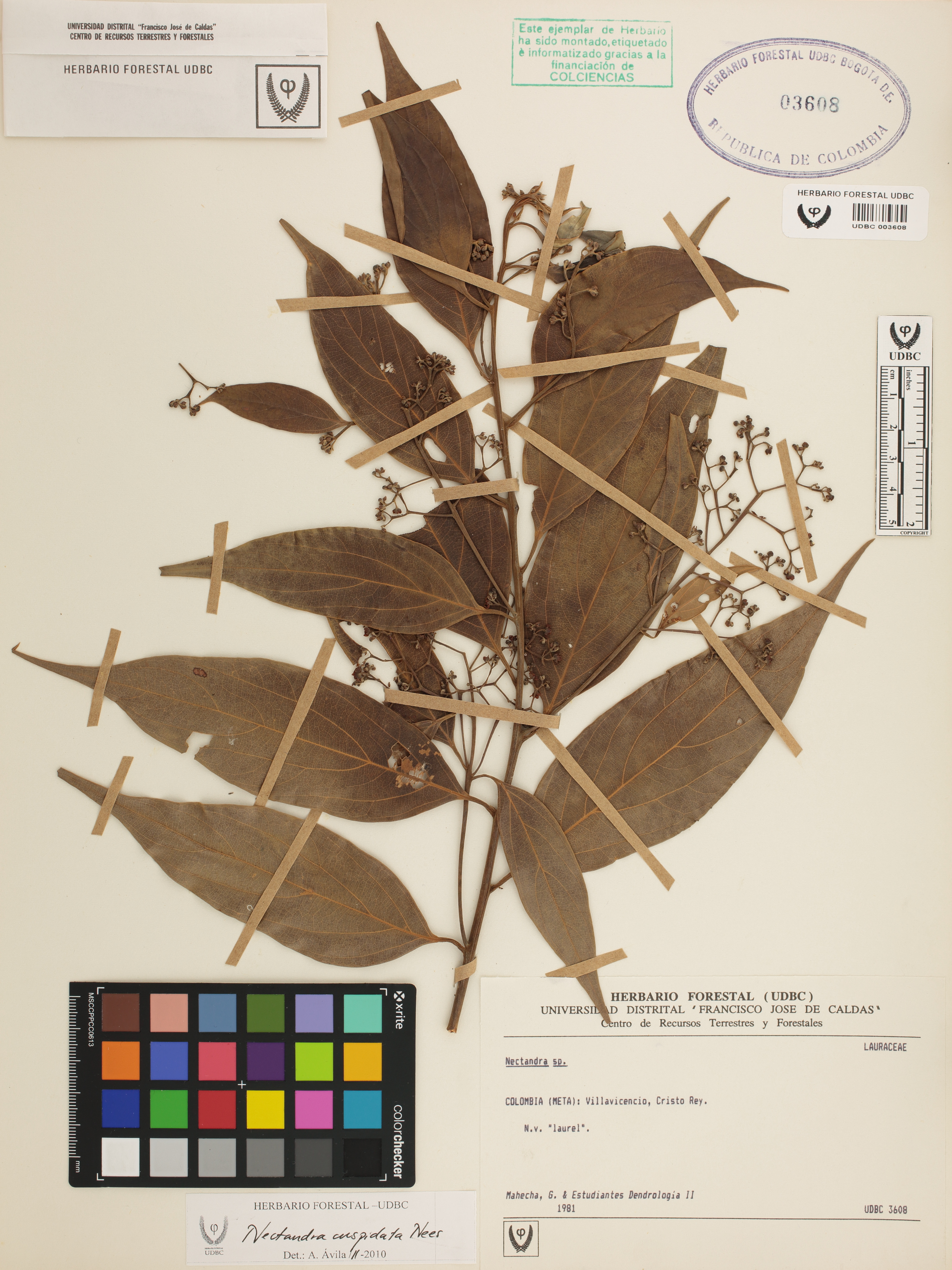 Fotografía del ejemplar Mahecha, G., determinado como Nectandra cuspidata en el año 2010