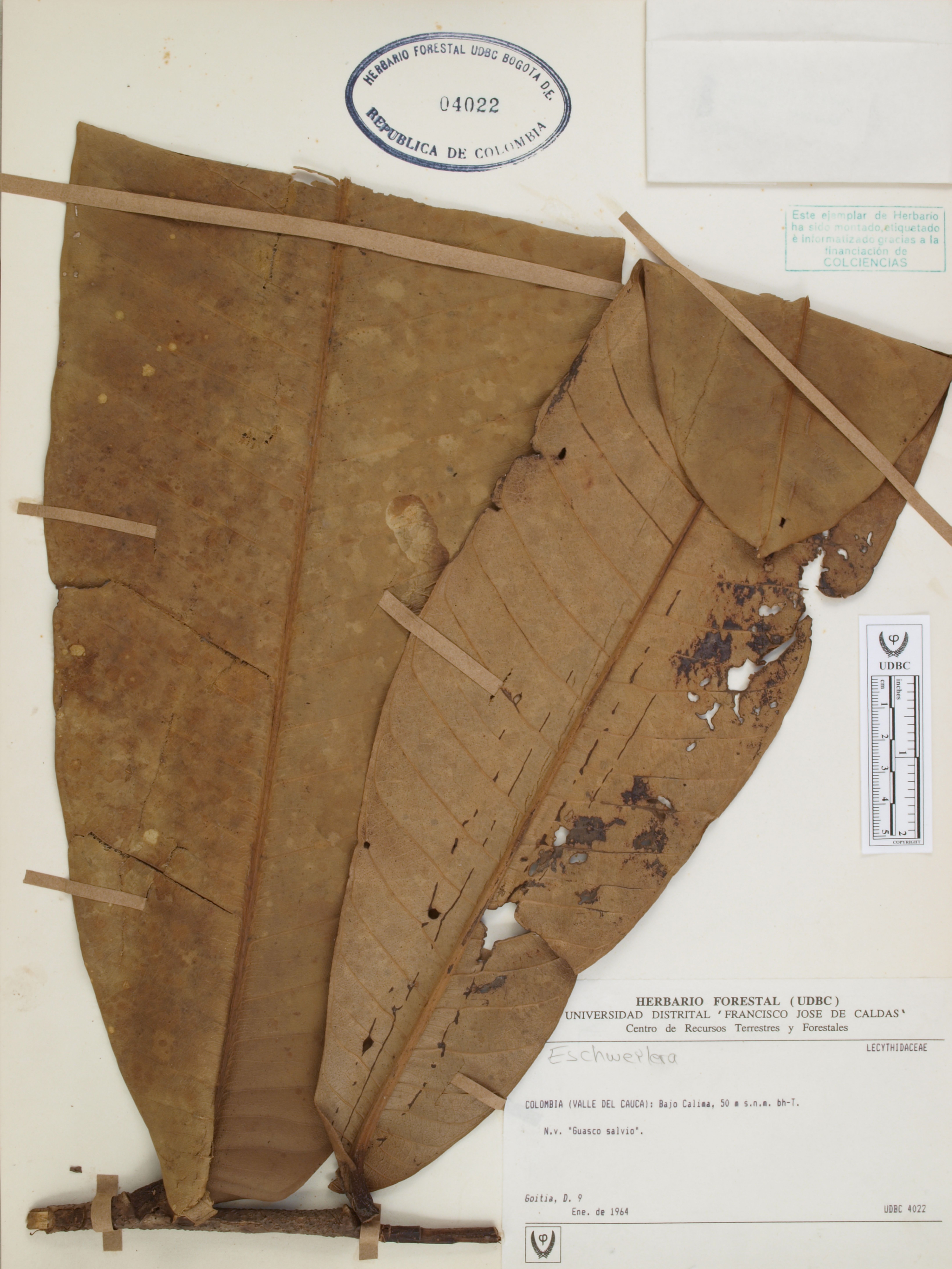 Fotografía del ejemplar Goitia, D. 9, determinado como Eschweilera sp. en el año 1995