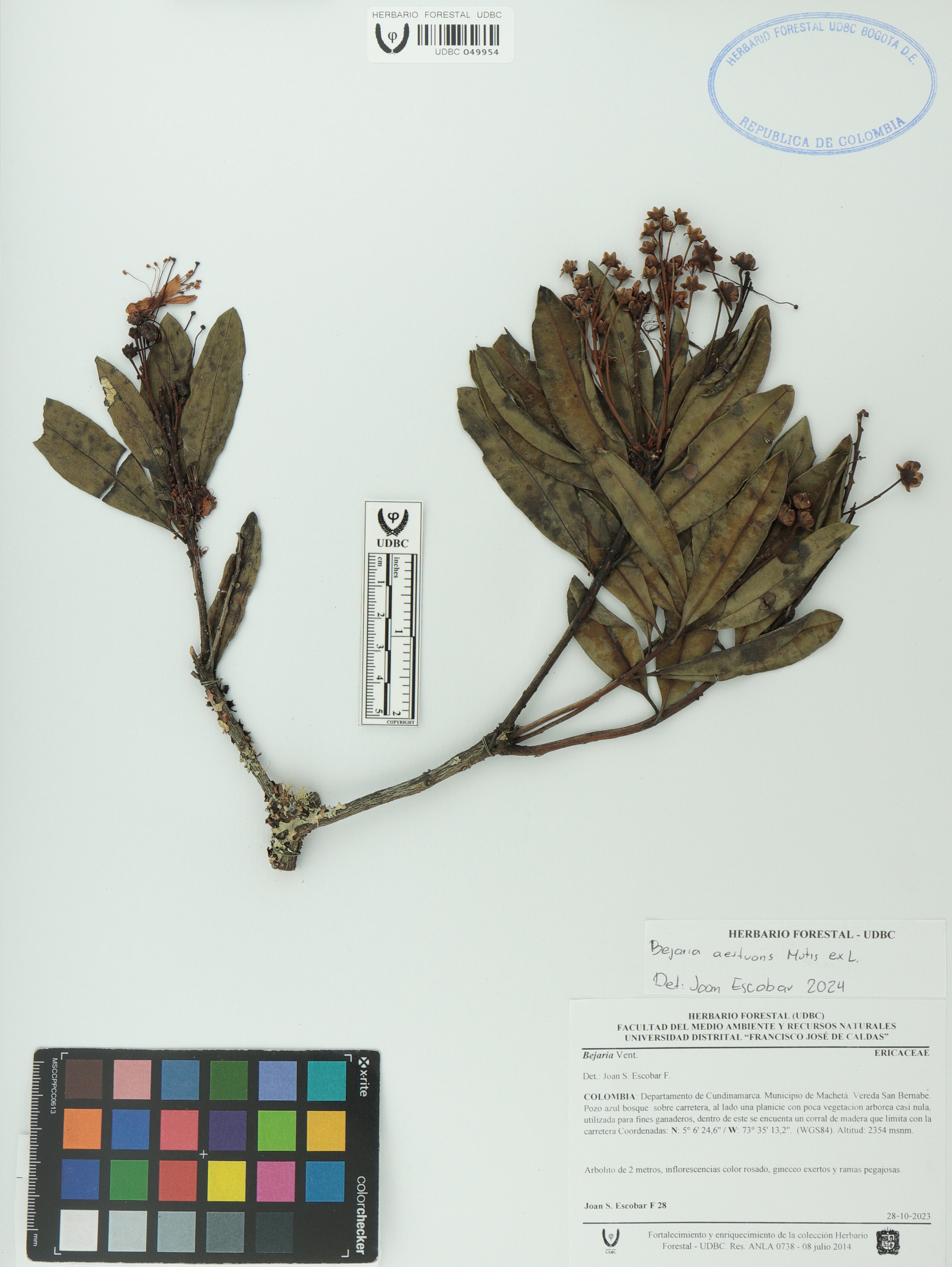 | dc.description | Fotografía del ejemplar Escobar, J. 28, determinado como Bejaria aestuans en el año 2024 | |