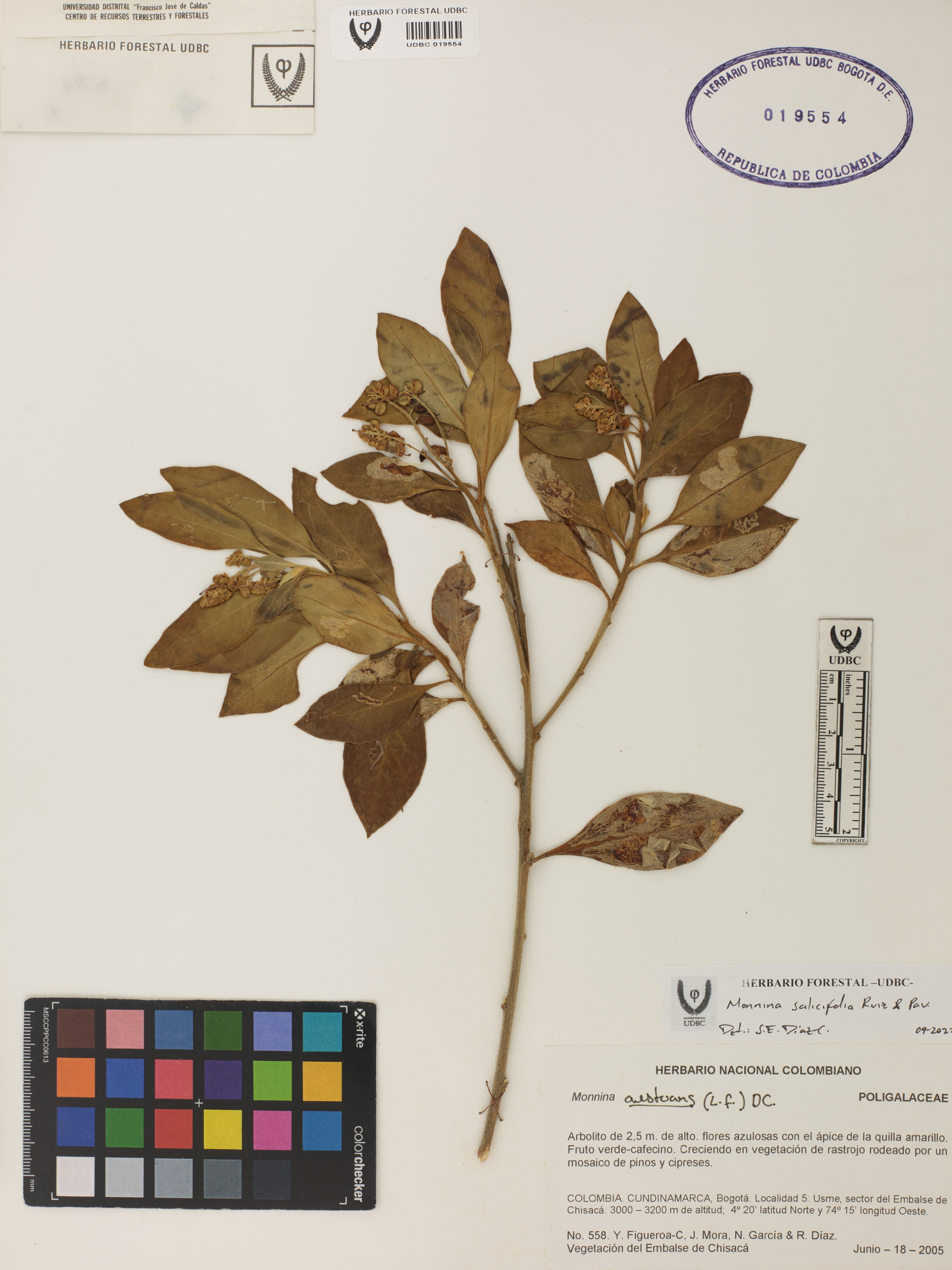 Fotografía del ejemplar Figueroa, Y. 558, determinado como Monnina salicifolia en el año 2022