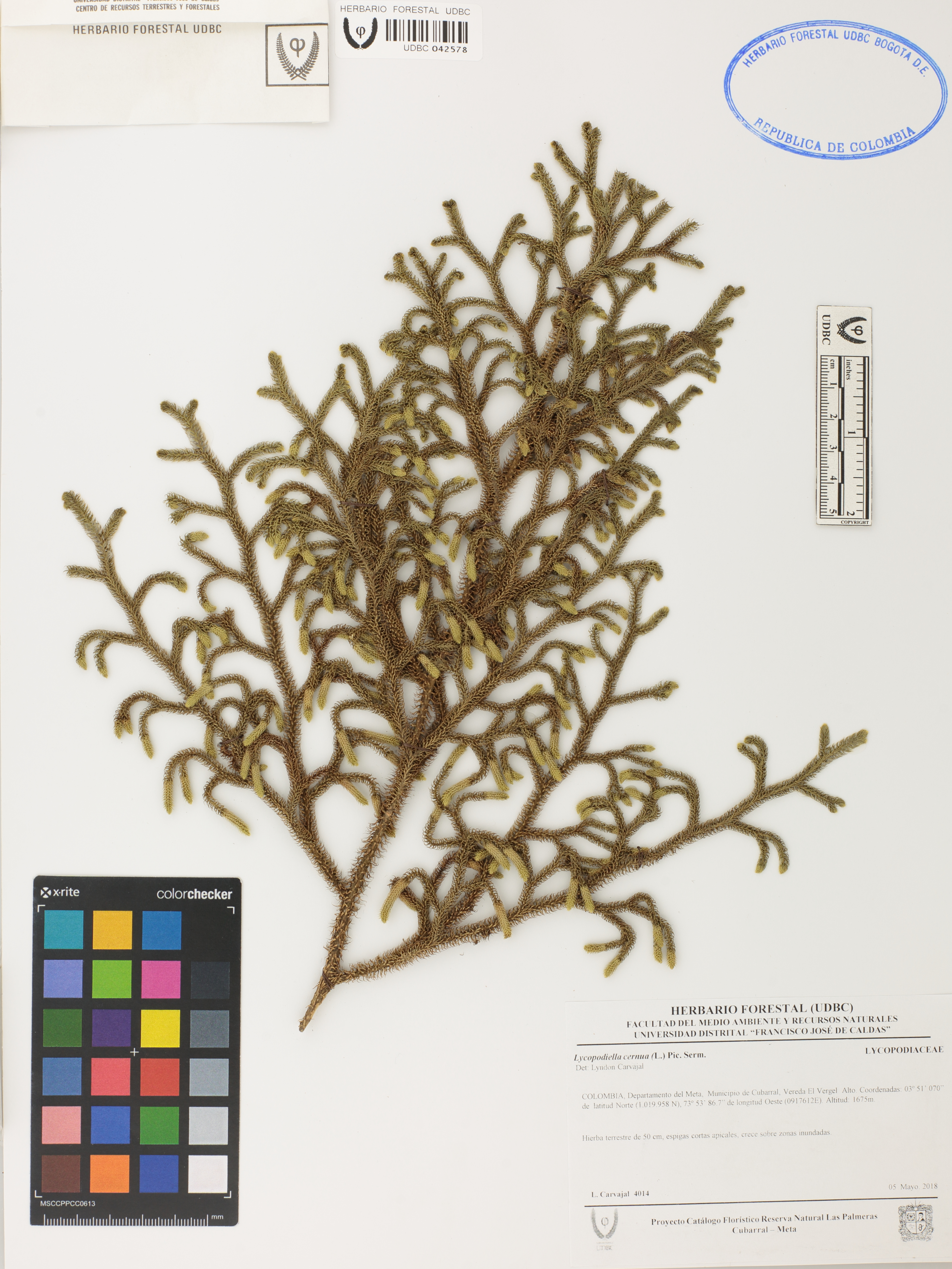 | dc.description | Fotografía del ejemplar Carvajal, L. 4014, determinado como Palhinhaea cernua | |