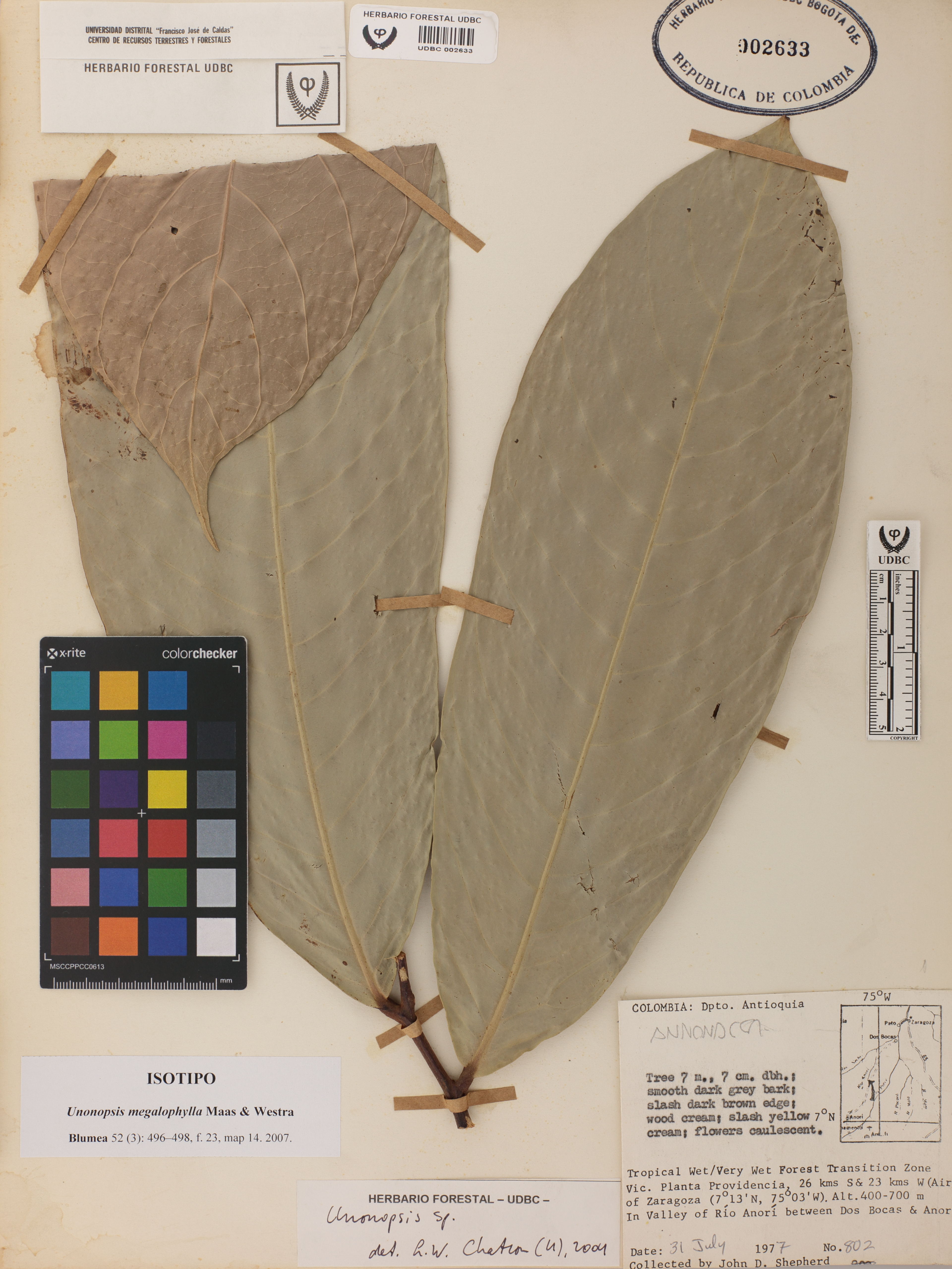 Fotografía del ejemplar Shepherd, J. 802, Isotipo de Unonopsis megalophylla