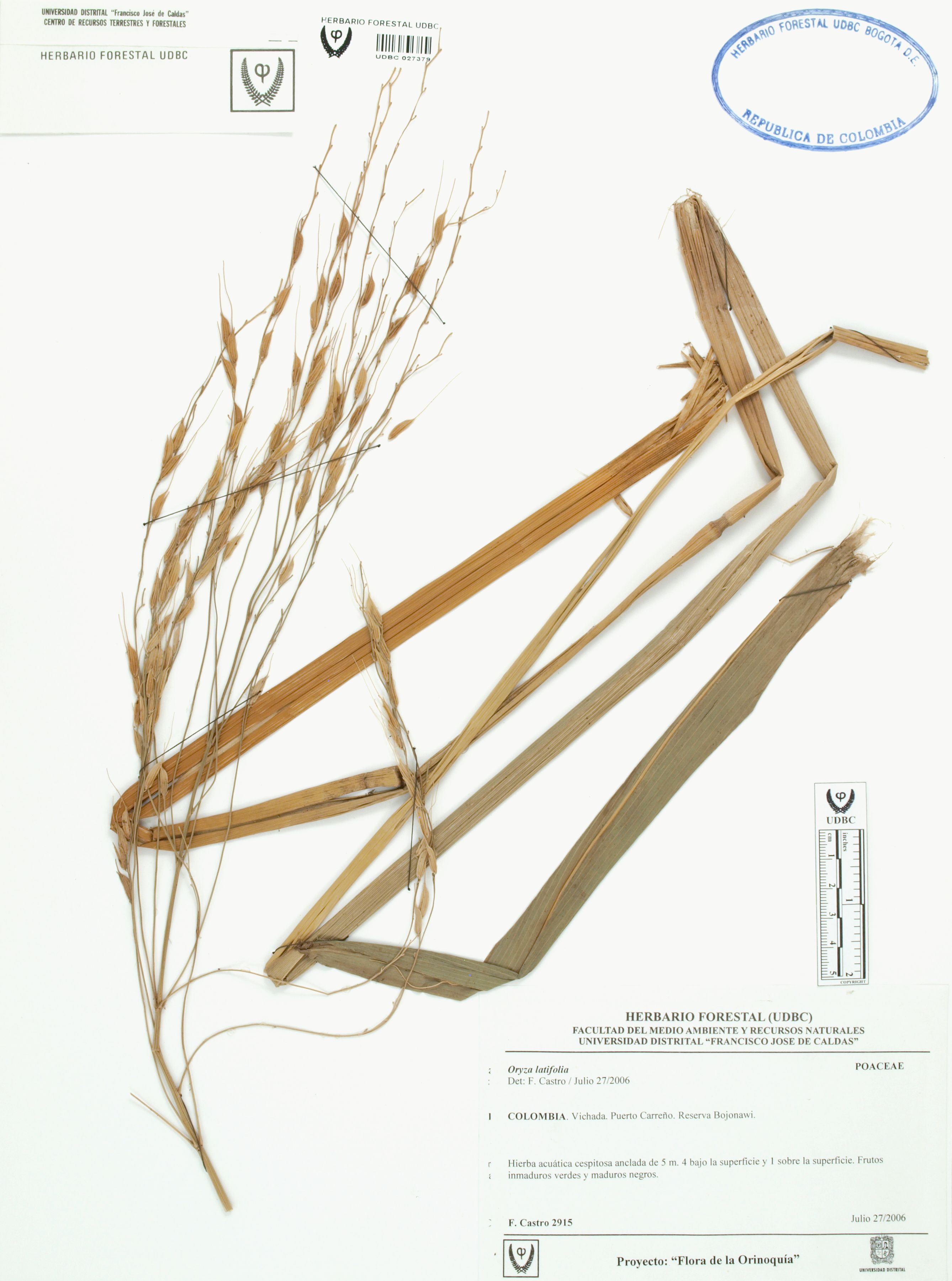 | dc.description | Fotografía del ejemplar Castro, F. 2915, determinado como Oryza latifolia en el año 2006 | |