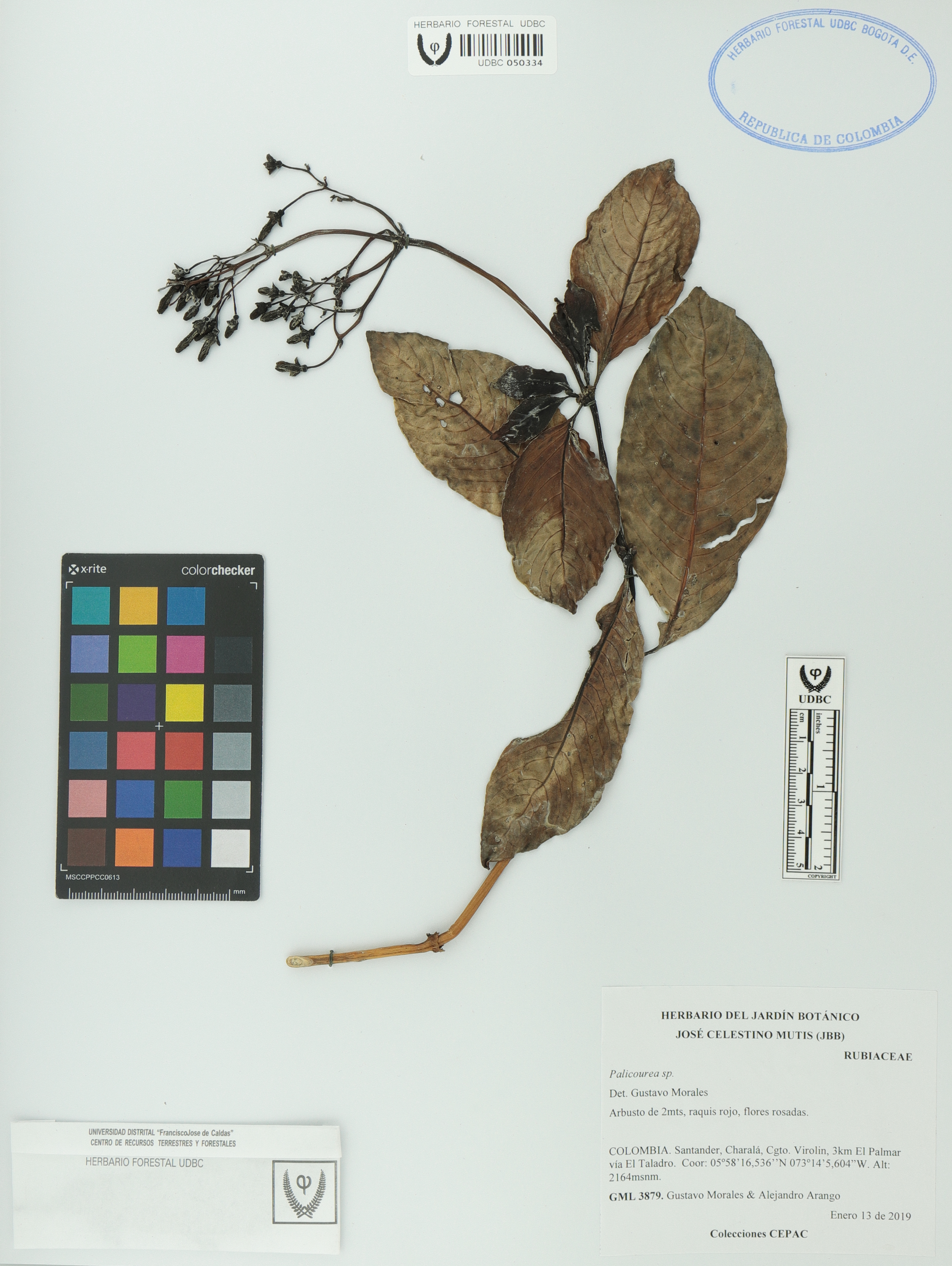 Fotografía del ejemplar Morales, G. 3879, determinado como Palicourea sp. en el año 2019