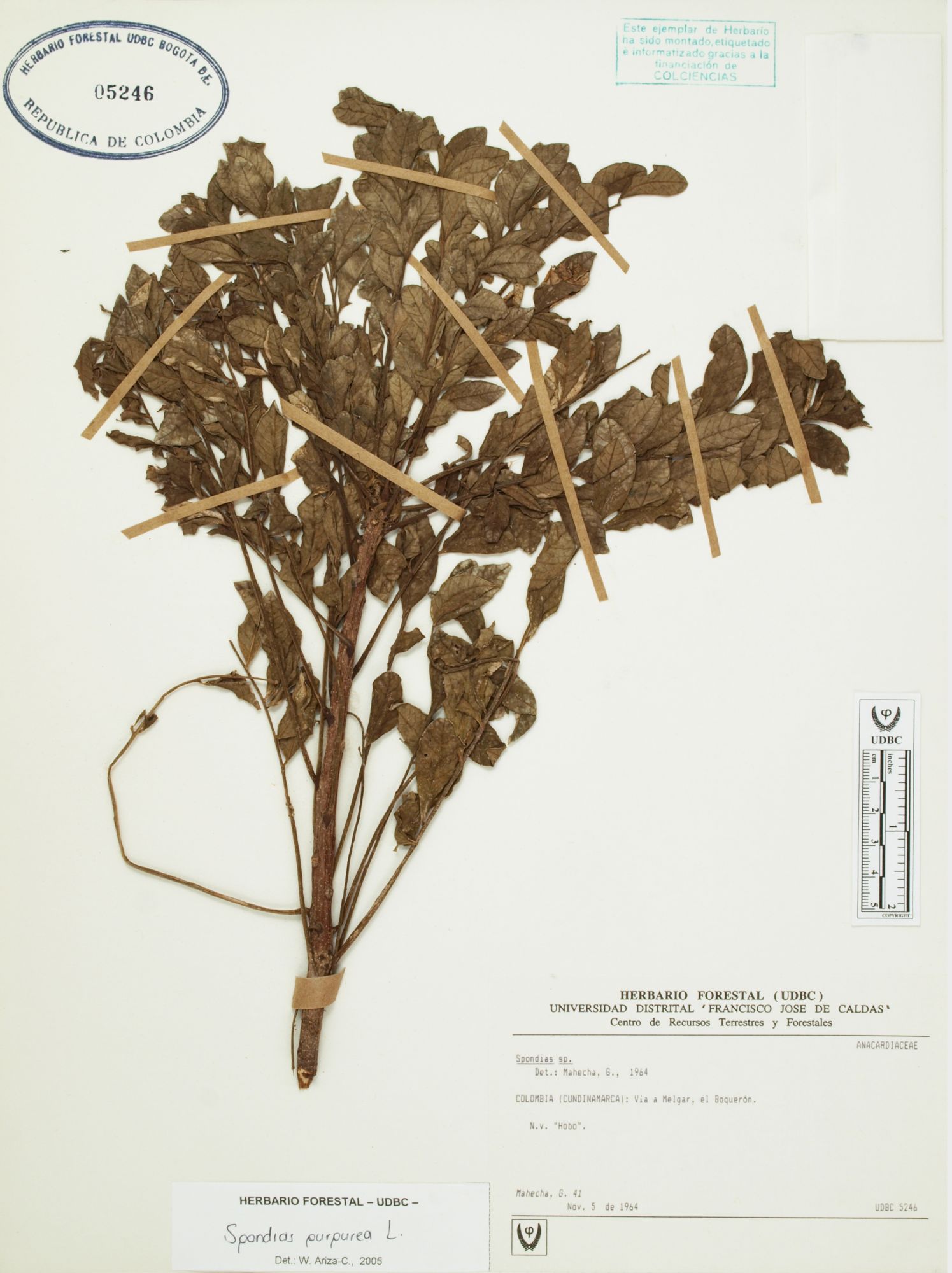 Fotografía del ejemplar Mahecha, G. 41, determinado como Spondias purpurea en el año 2005
