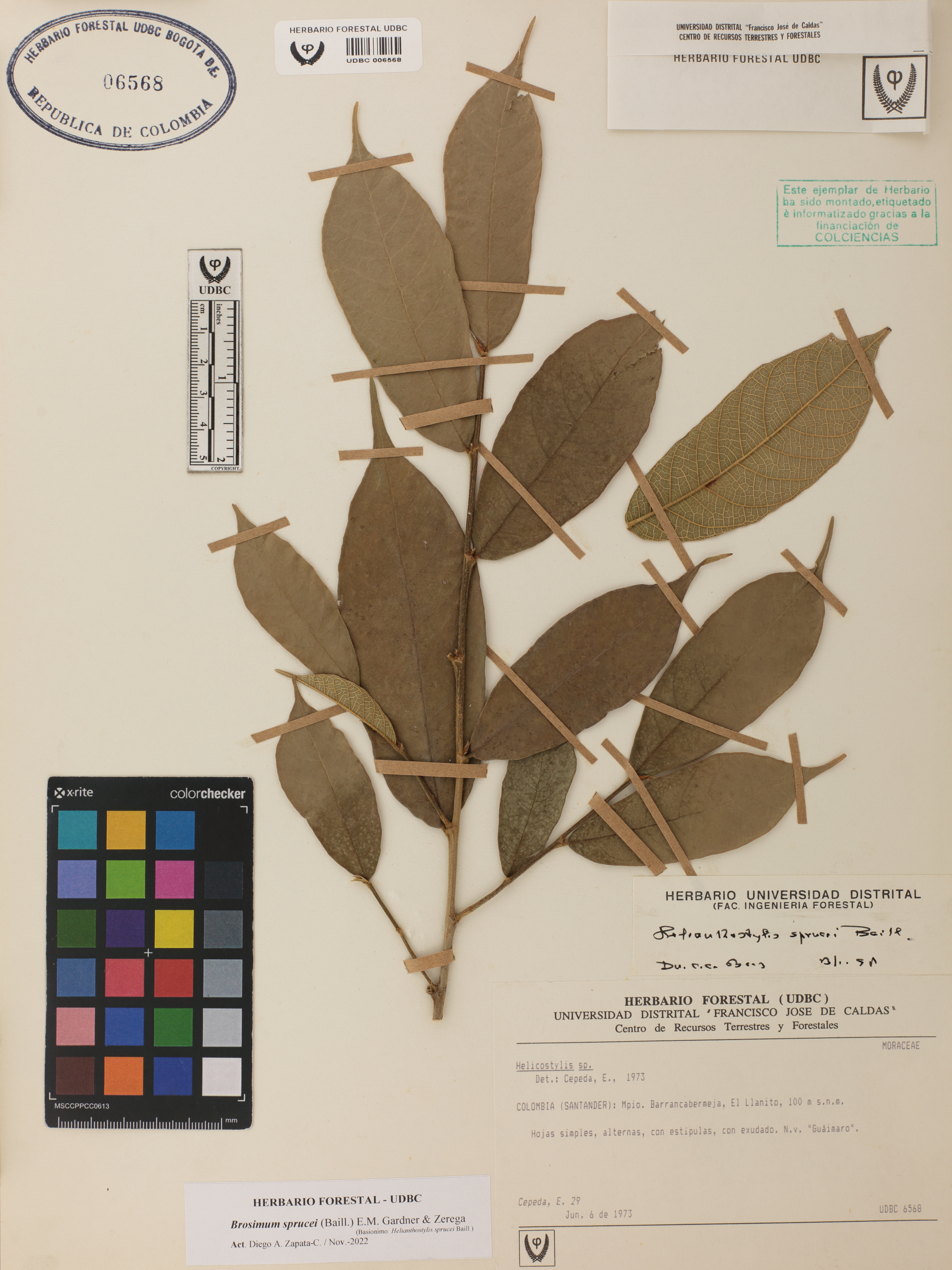 | dc.description | Fotografía del ejemplar Cepeda, E. 29, determinado como Brosimum sprucei en el año 1997 | |