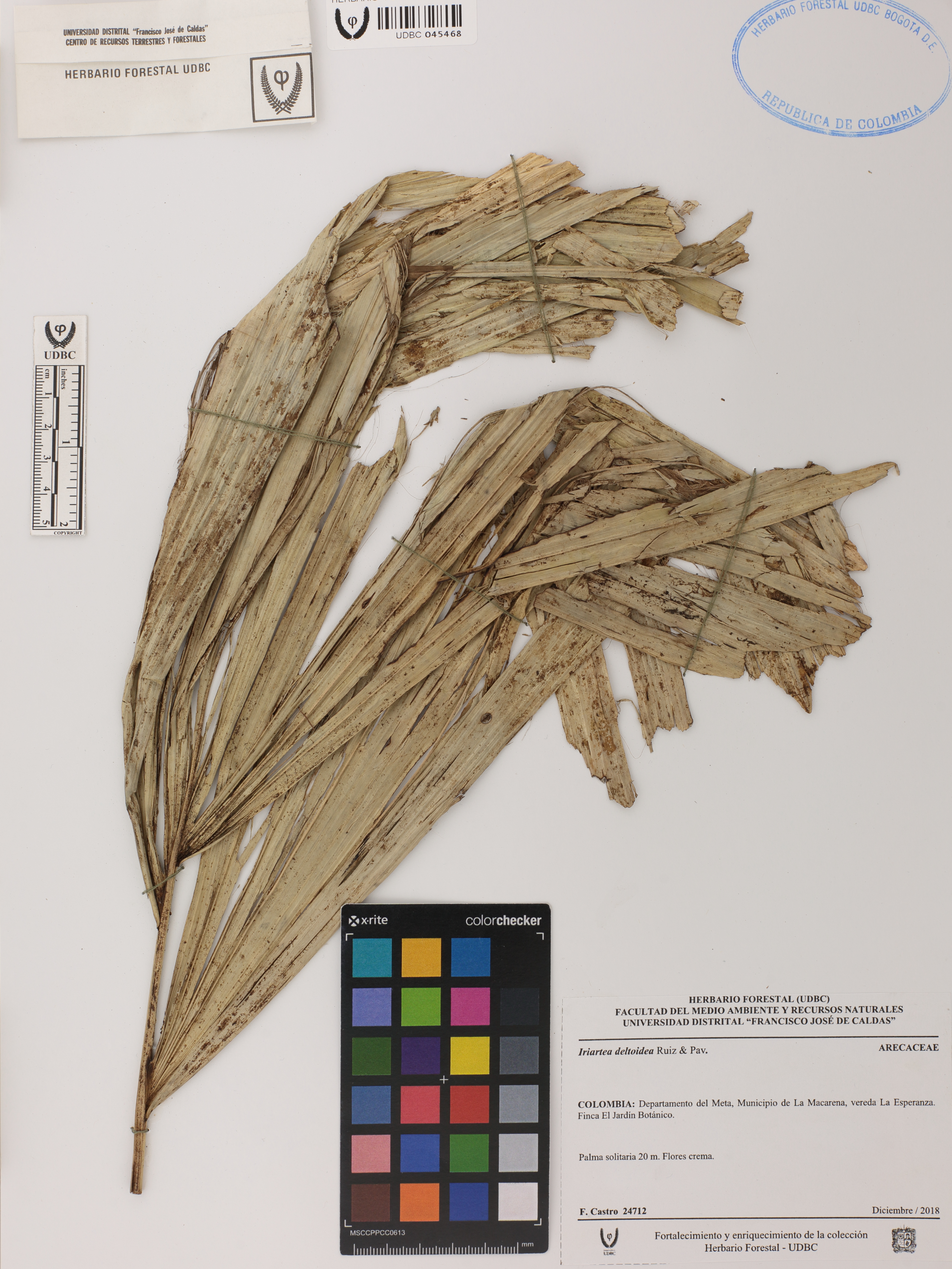 Fotografía del ejemplar Castro, F. 24712, determinado como Iriartea deltoidea en el año 2018