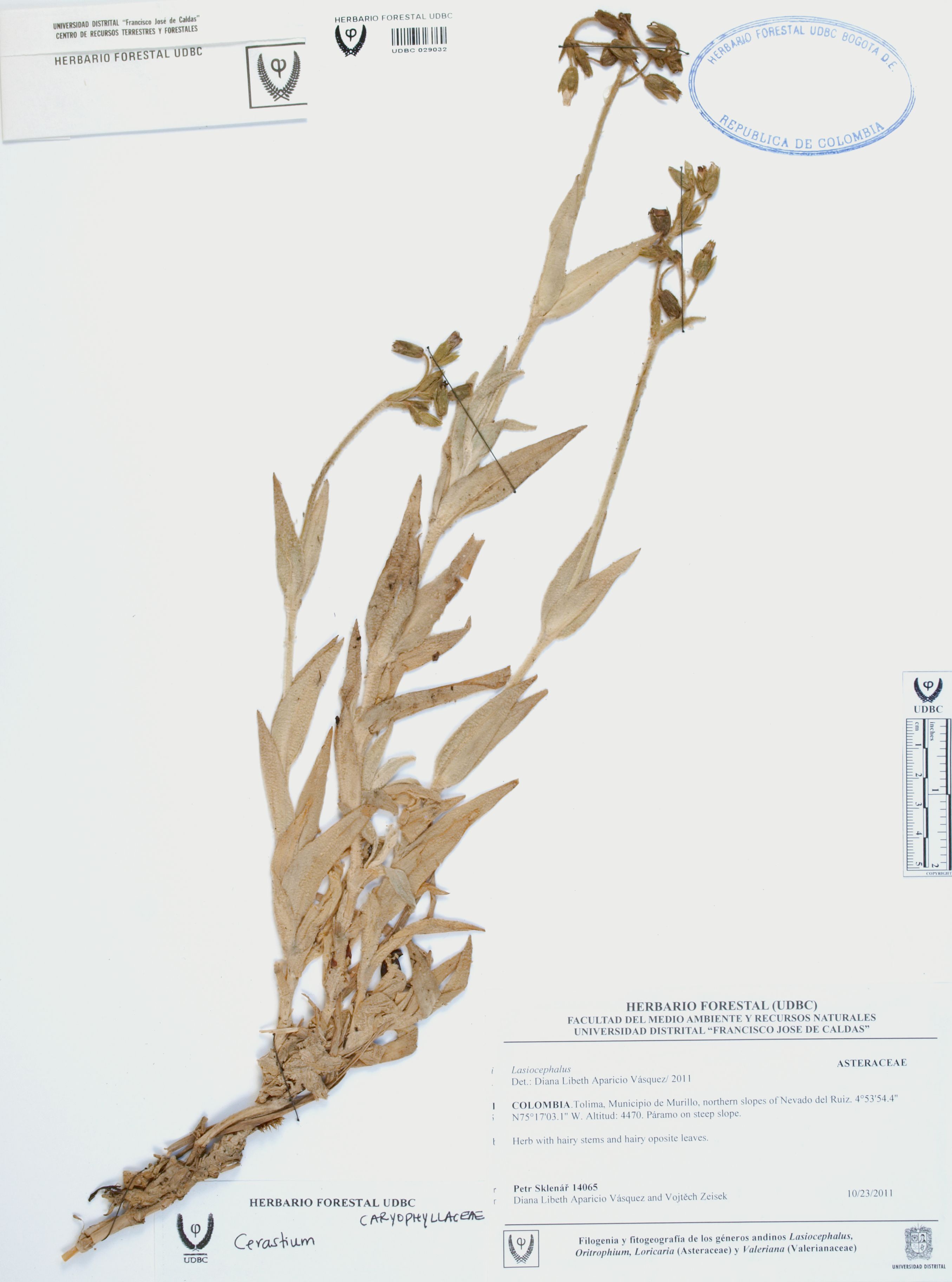 Fotografía del ejemplar Sklenar, P. 14065, determinado como Cerastium sp.