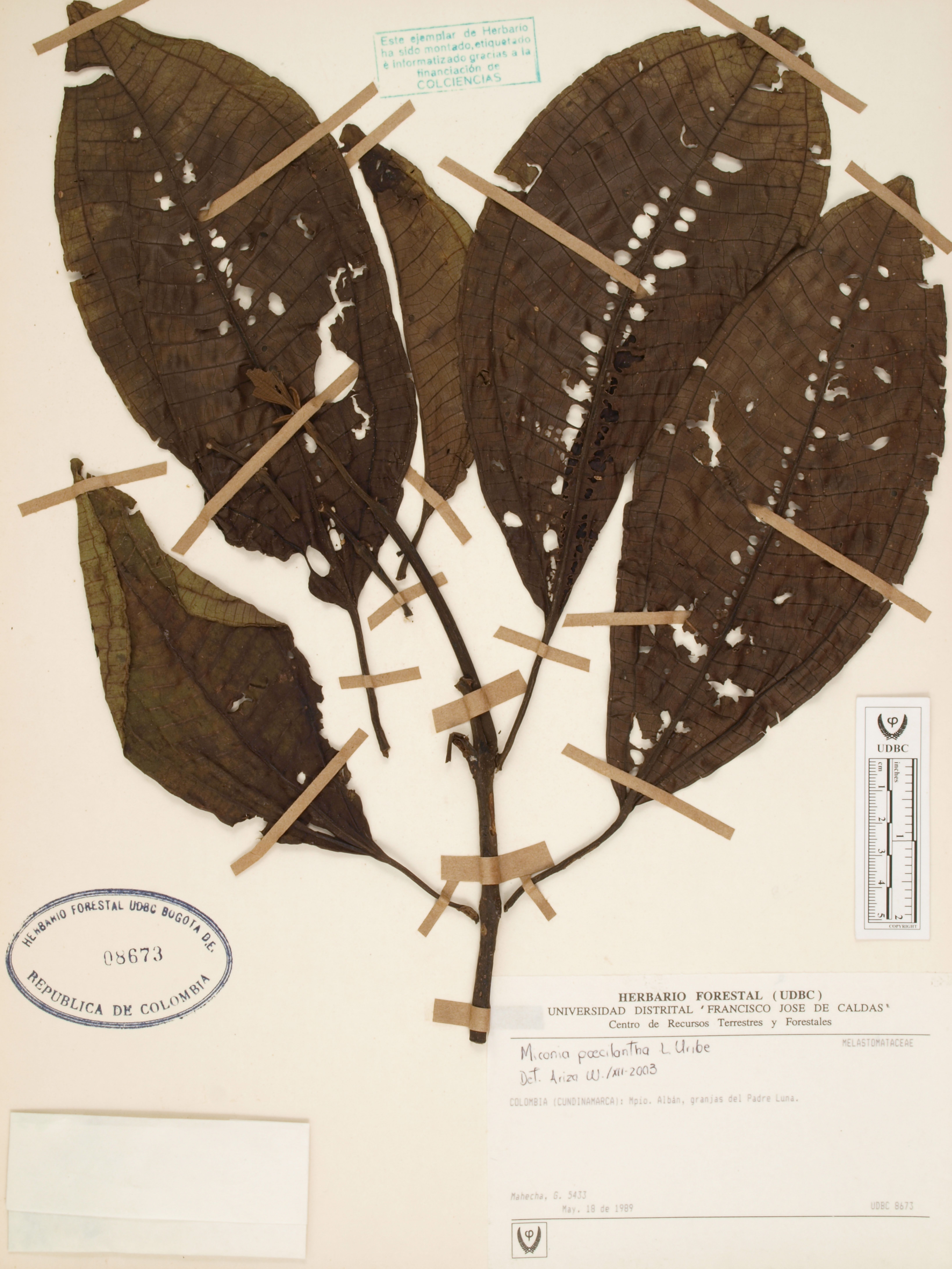 | dc.description | Fotografía del ejemplar Mahecha, G. 5433, determinado como Miconia notabilis en el año 2003 | |