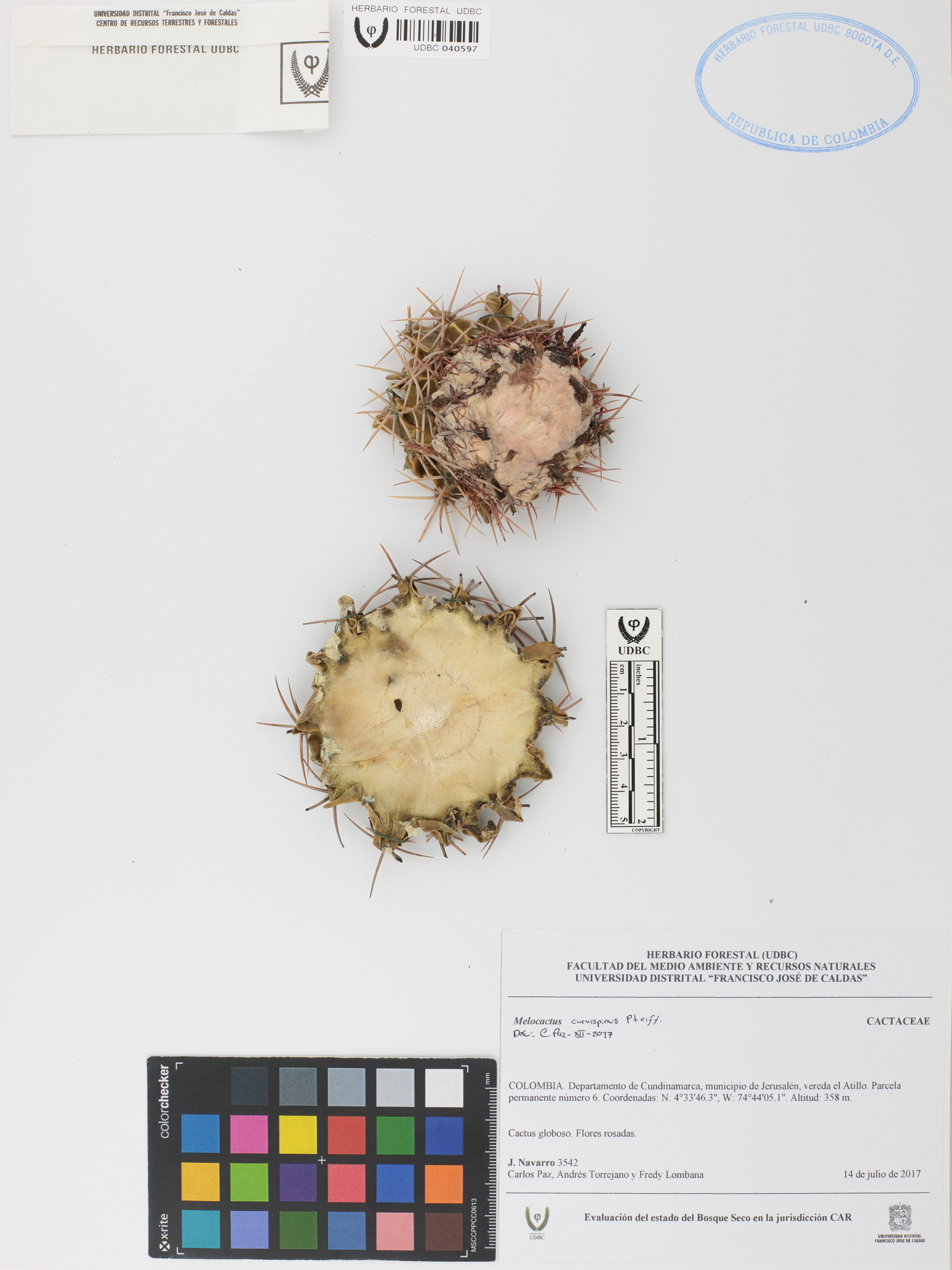 | dc.description | Fotografía del ejemplar Navarro, J. 3542, determinado como Melocactus curvispinus en el año 2017 | |