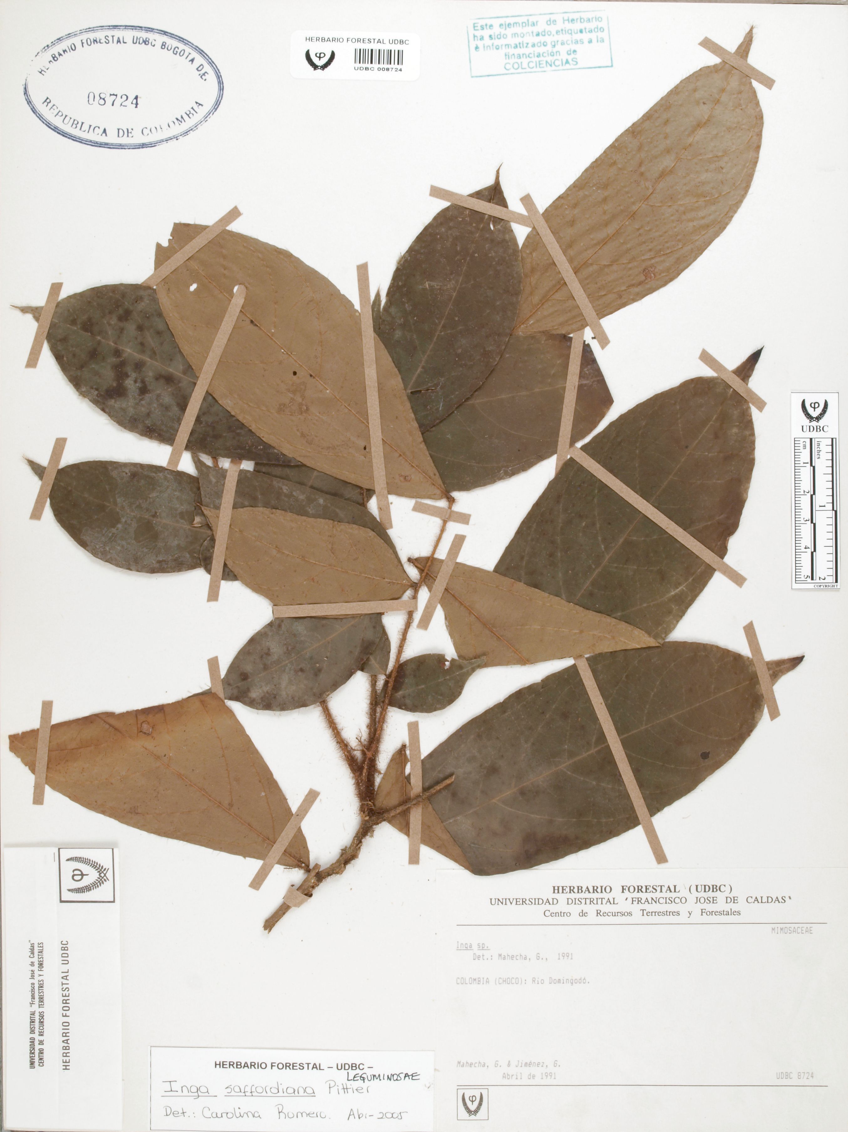 Fotografía del ejemplar Mahecha, G., determinado como Inga saffordiana en el año 2005