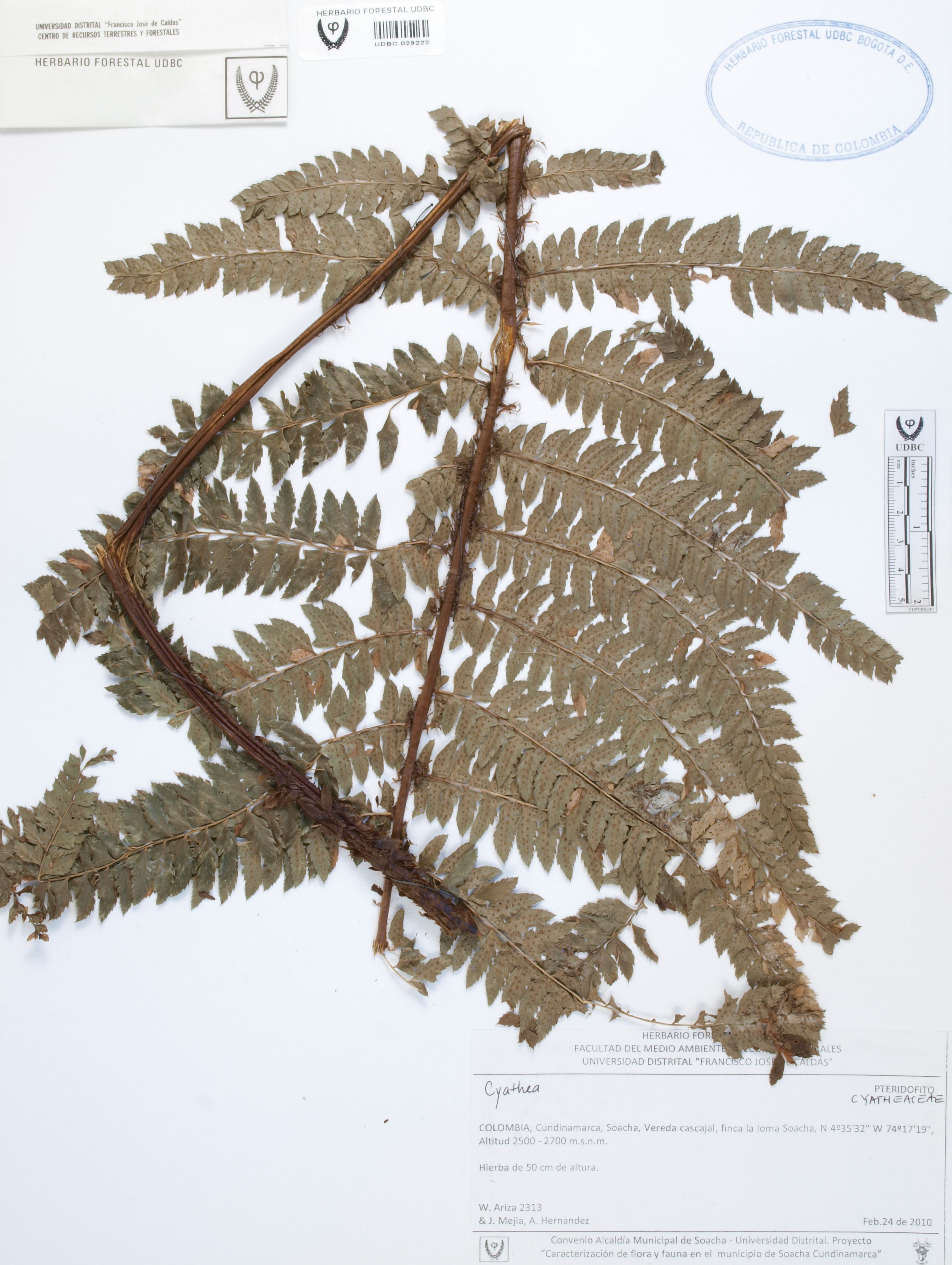 Fotografía del ejemplar Ariza, W. 2313, determinado como Cyathea sp.