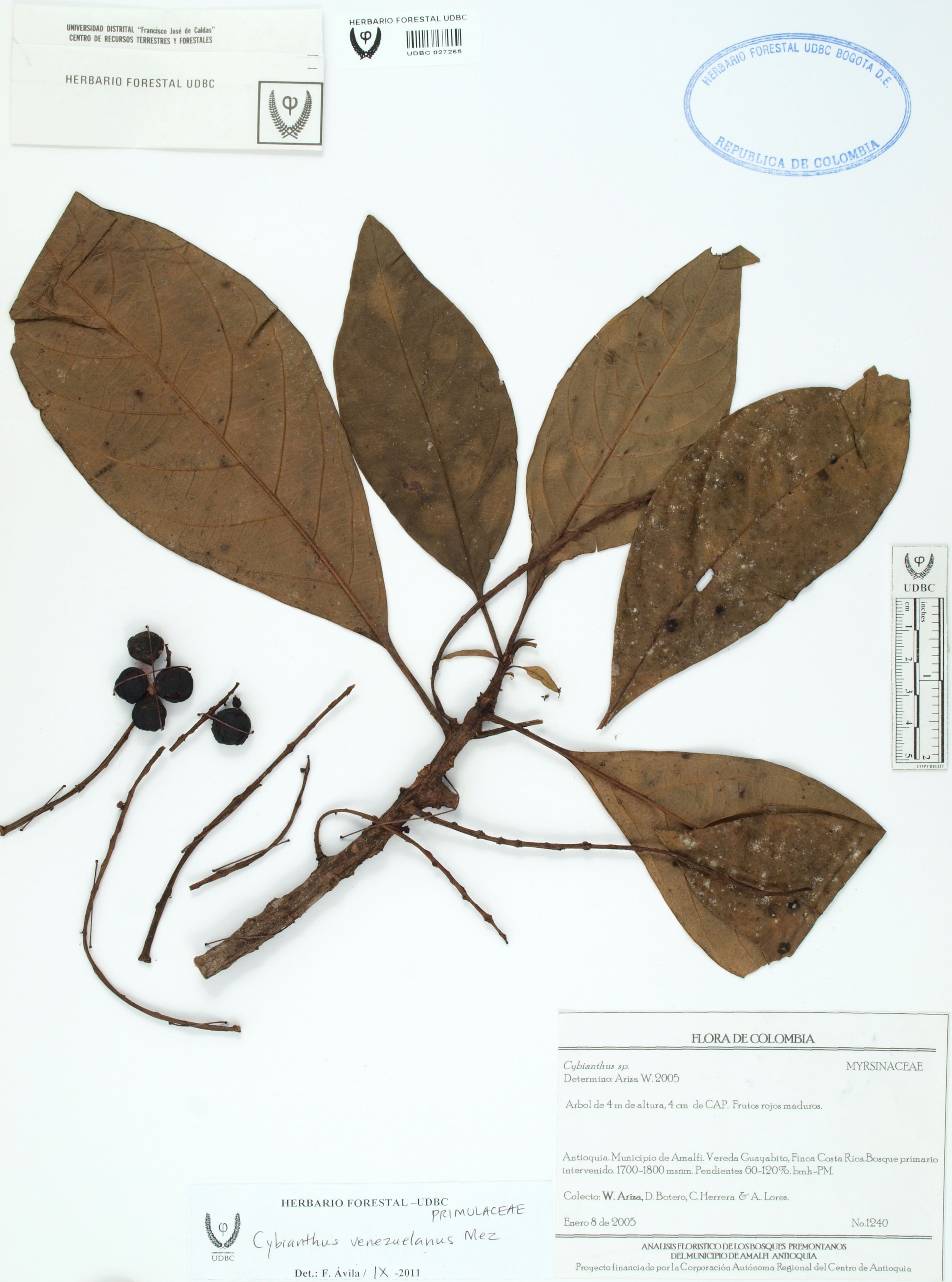 Fotografía del ejemplar Ariza, W. 1240, determinado como Cybianthus venezuelanus en el año 2011