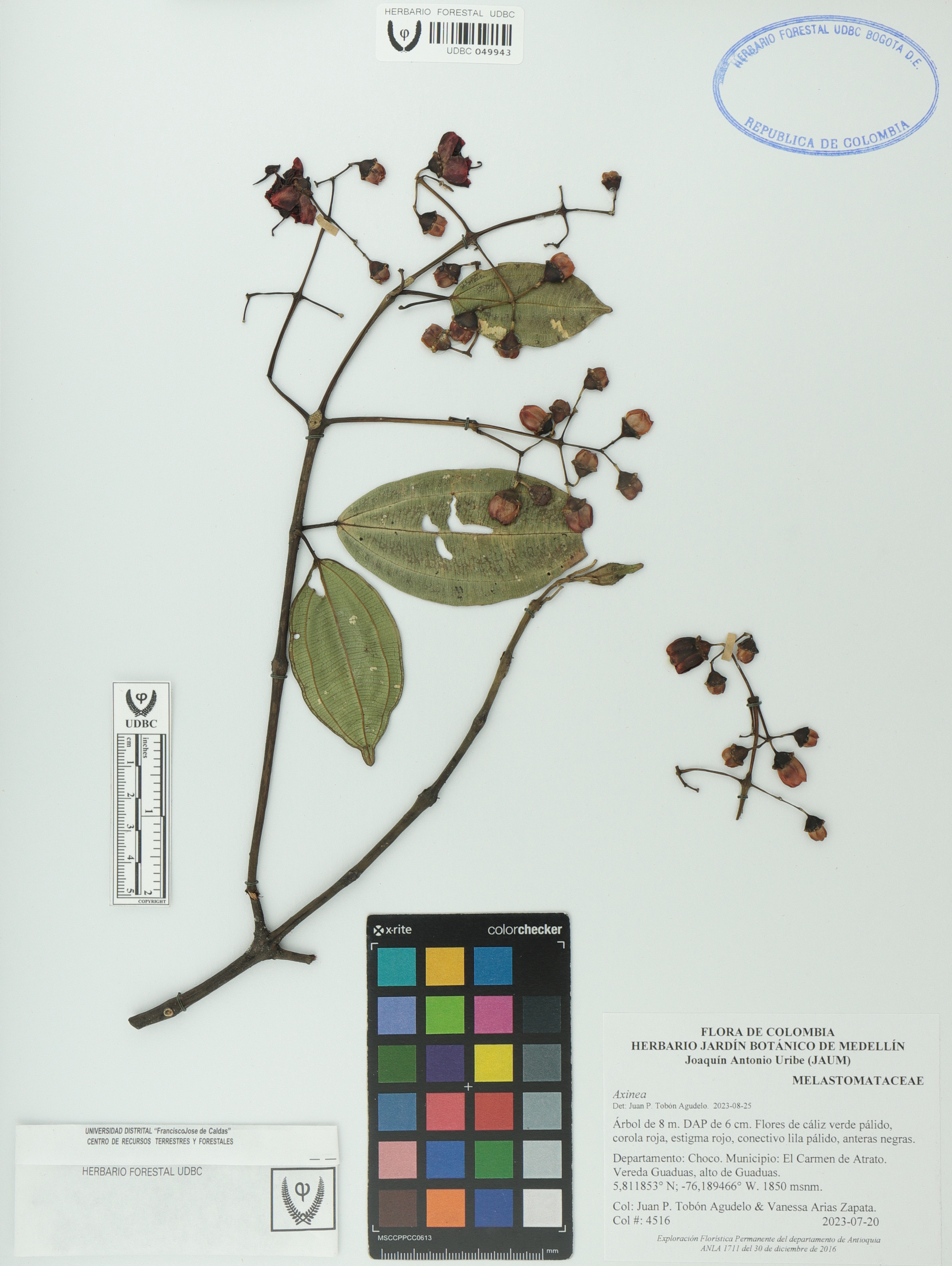 Fotografía del ejemplar Tobón-Agudelo, J. 4516, determinado como Axinaea sp. en el año 2023