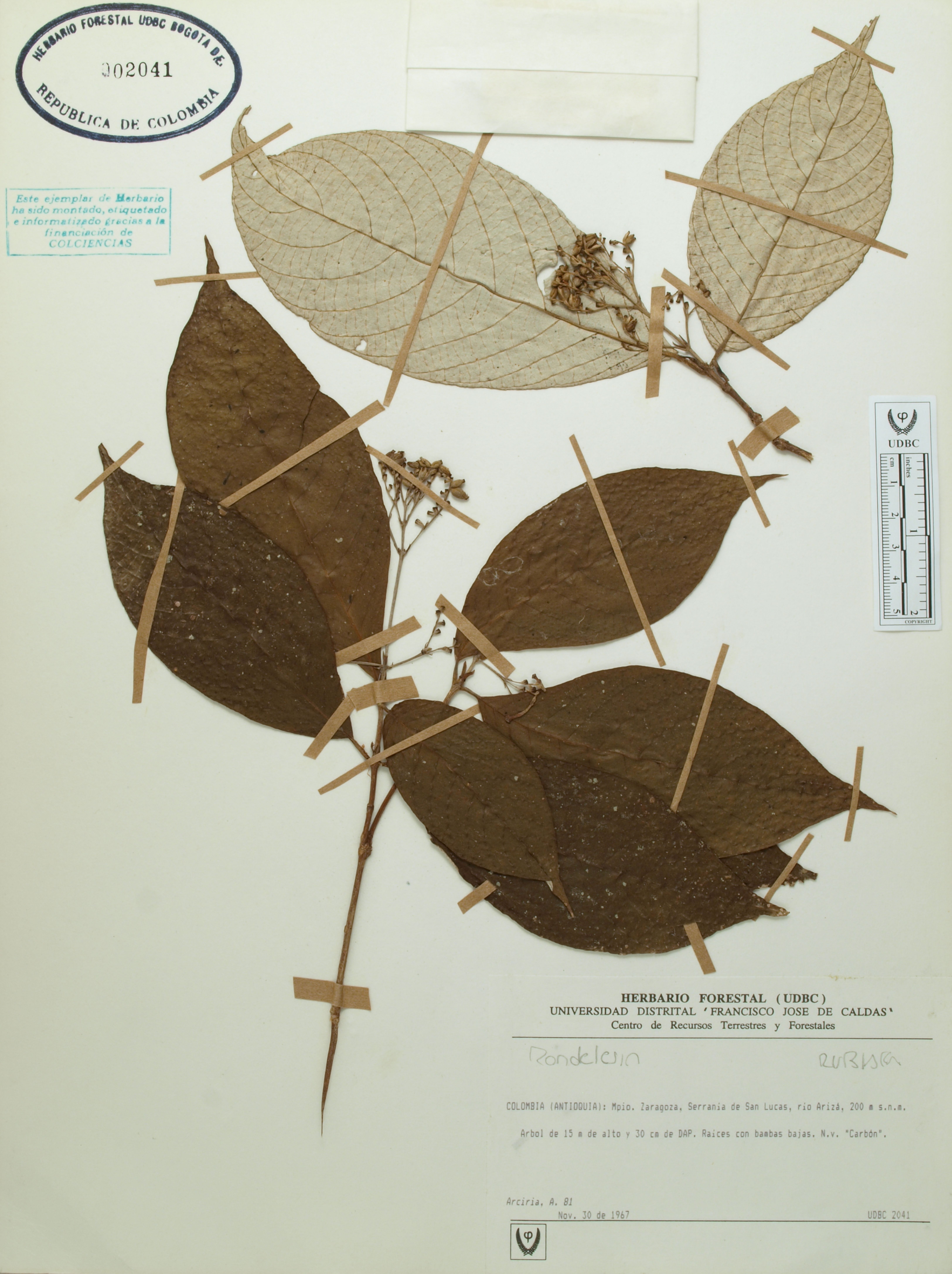 Fotografía del ejemplar Arciria, A. 81, determinado como Rondeletia sp.