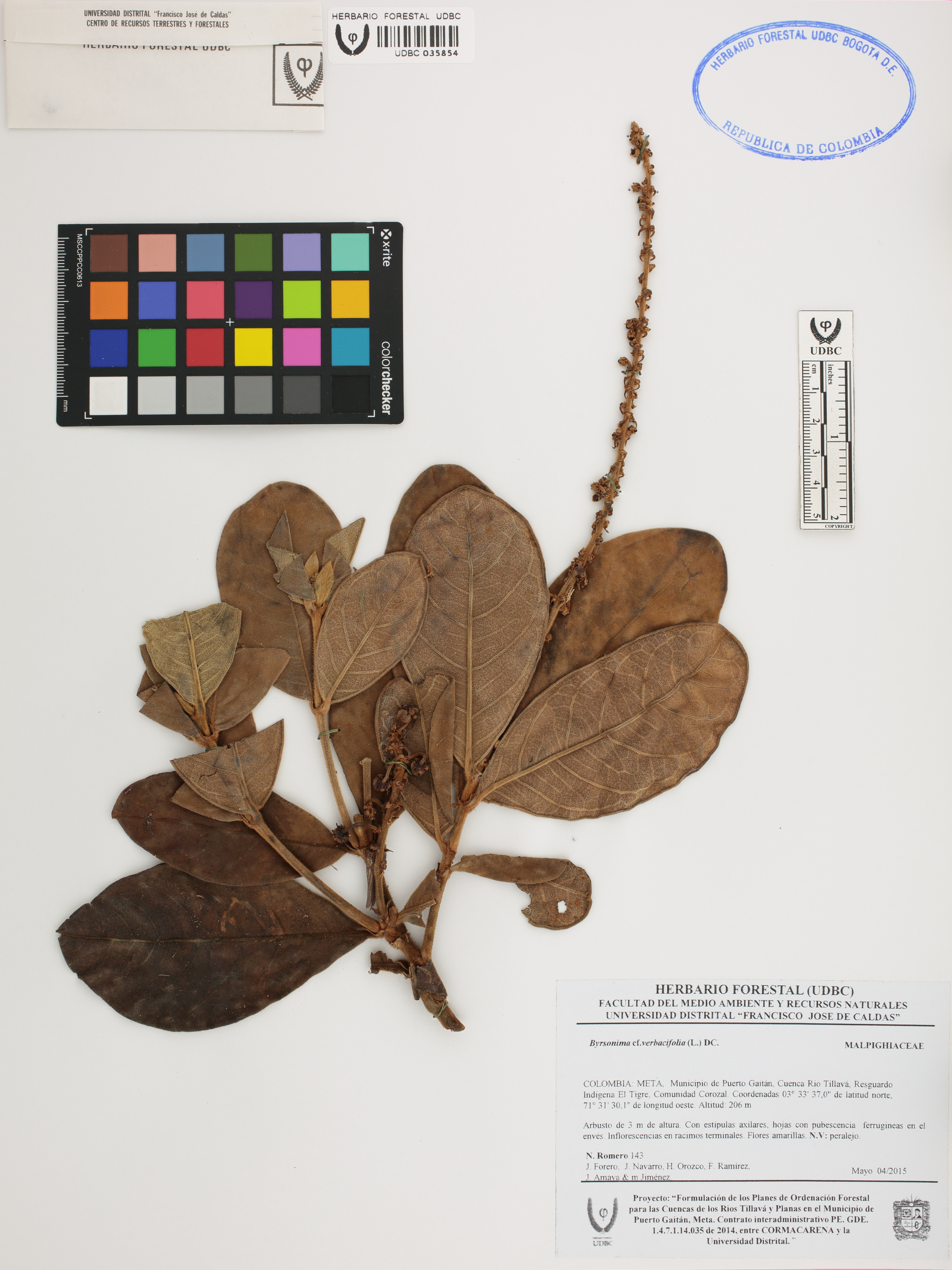 | dc.description | Fotografía del ejemplar Romero, N. 143, determinado como Byrsonima verbascifolia | |