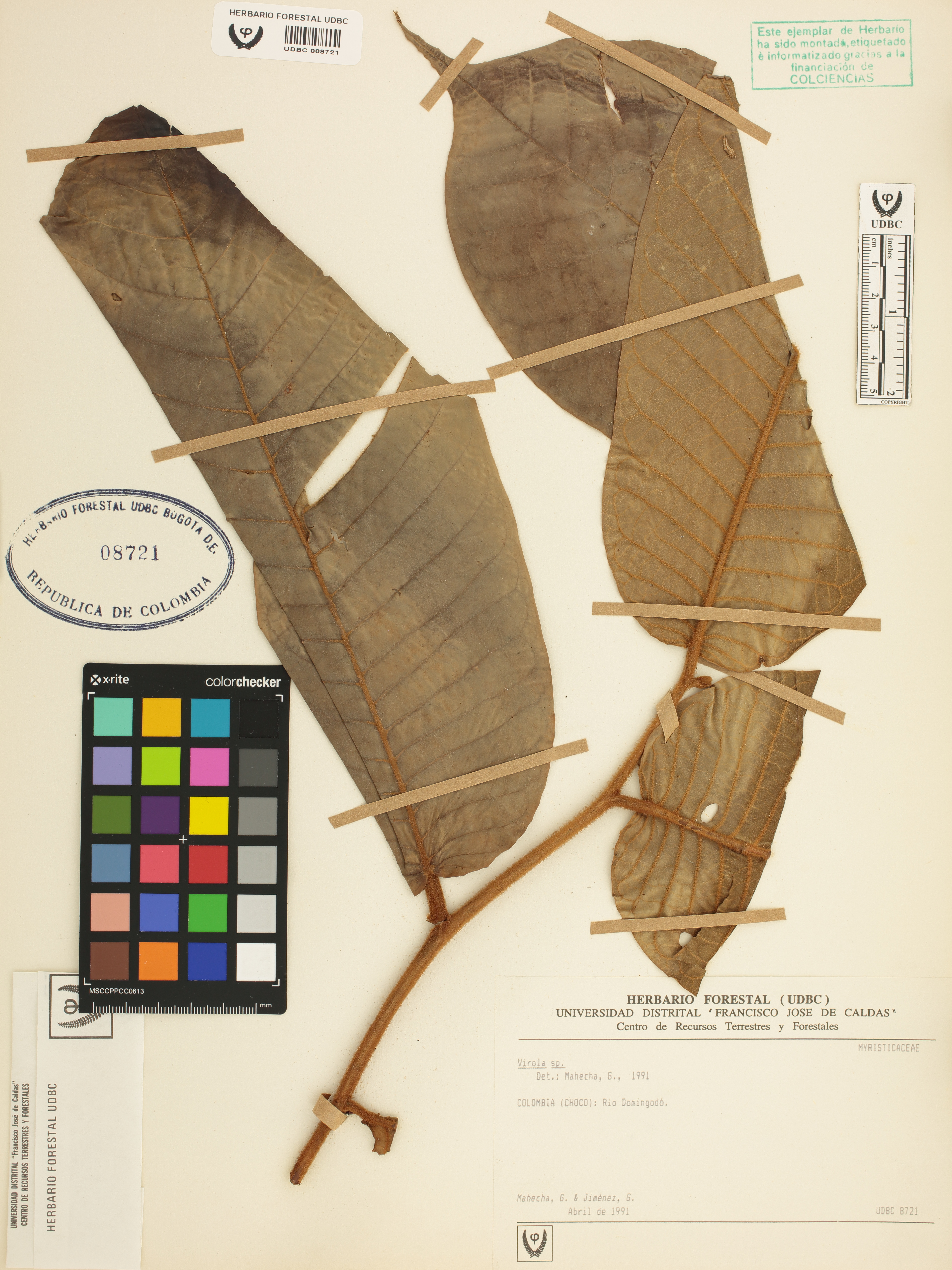 Fotografía del ejemplar Mahecha, G., determinado como Virola sp. en el año 1991