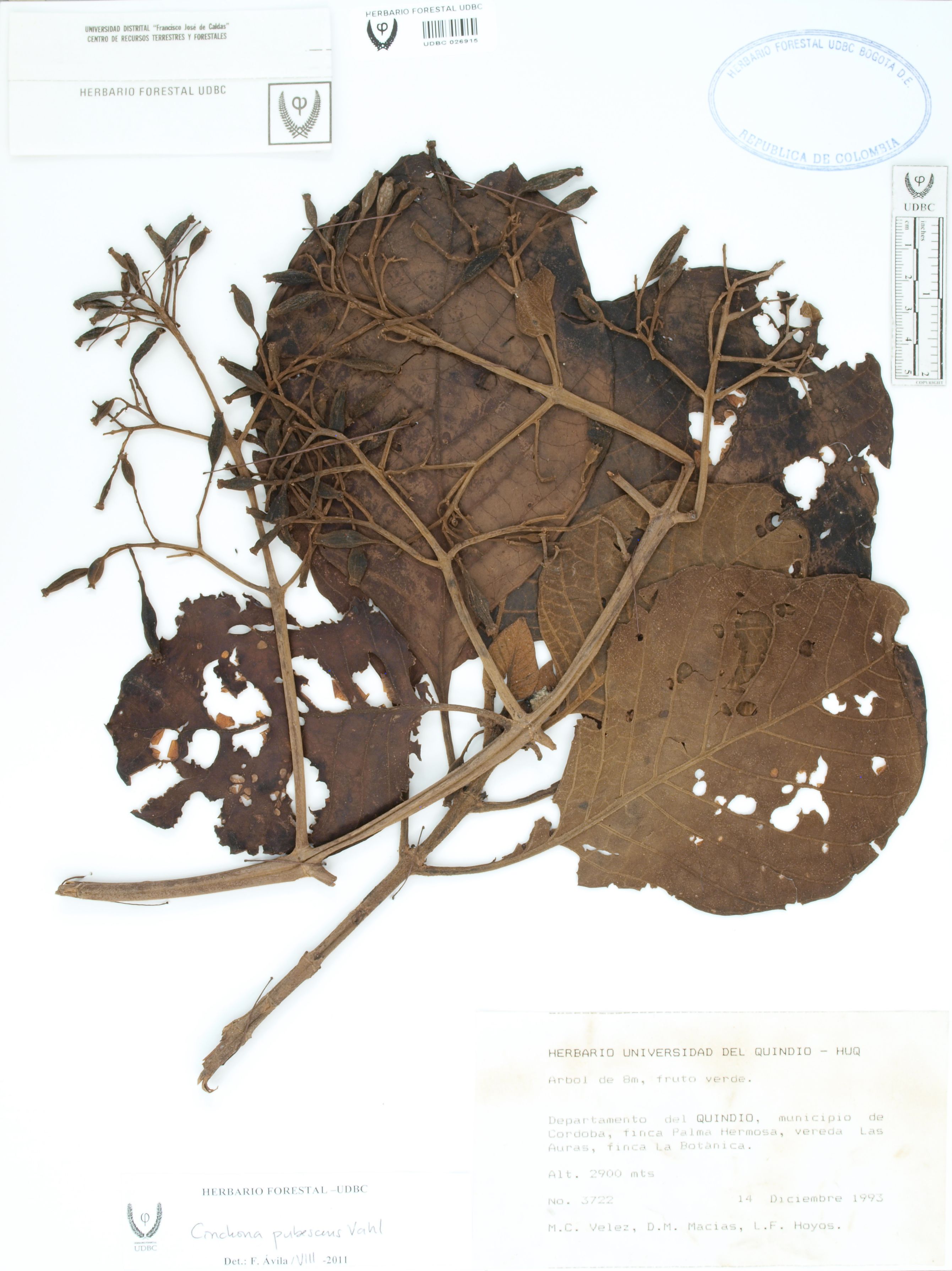 | dc.description | Fotografía del ejemplar Vélez, M. 3722, determinado como Cinchona pubescens en el año 2011 | |