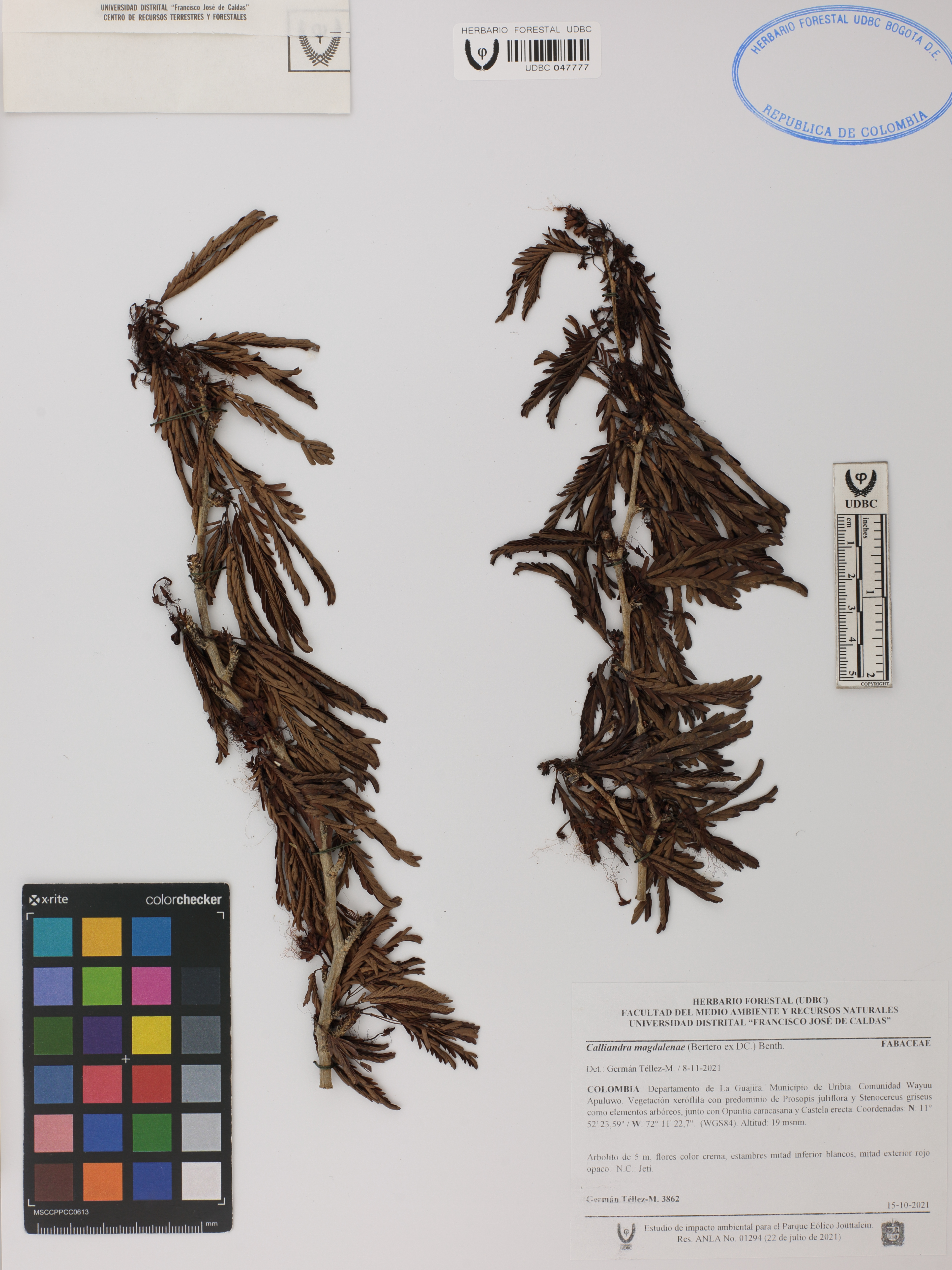 Fotografía del ejemplar Téllez-M., G. 3862, determinado como Calliandra magdalenae en el año 2021