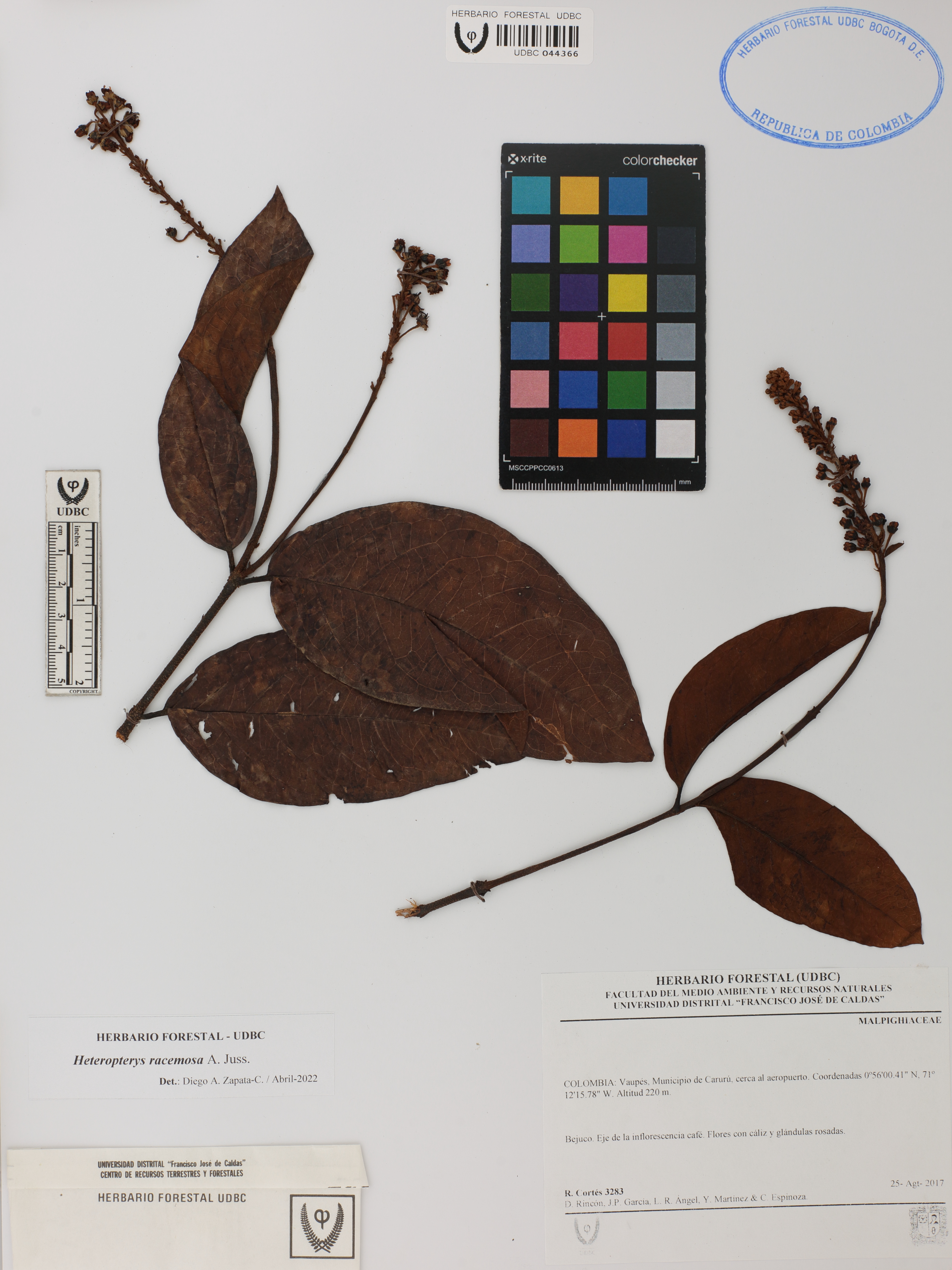 Fotografía del ejemplar Cortés, R. 3283, determinado como Heteropterys racemosa en el año 2022