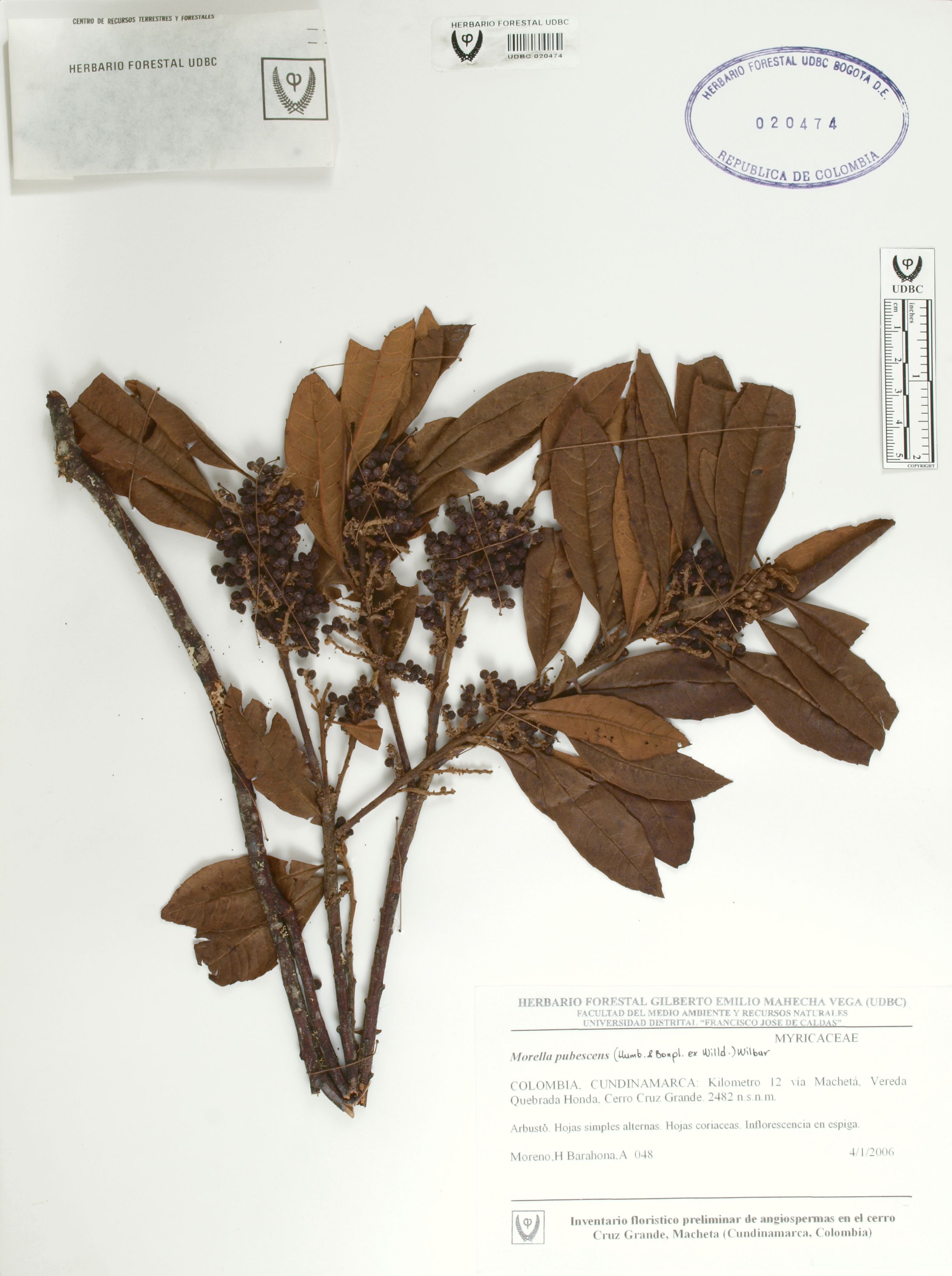 Fotografía del ejemplar Moreno, H. 48, determinado como Morella pubescens