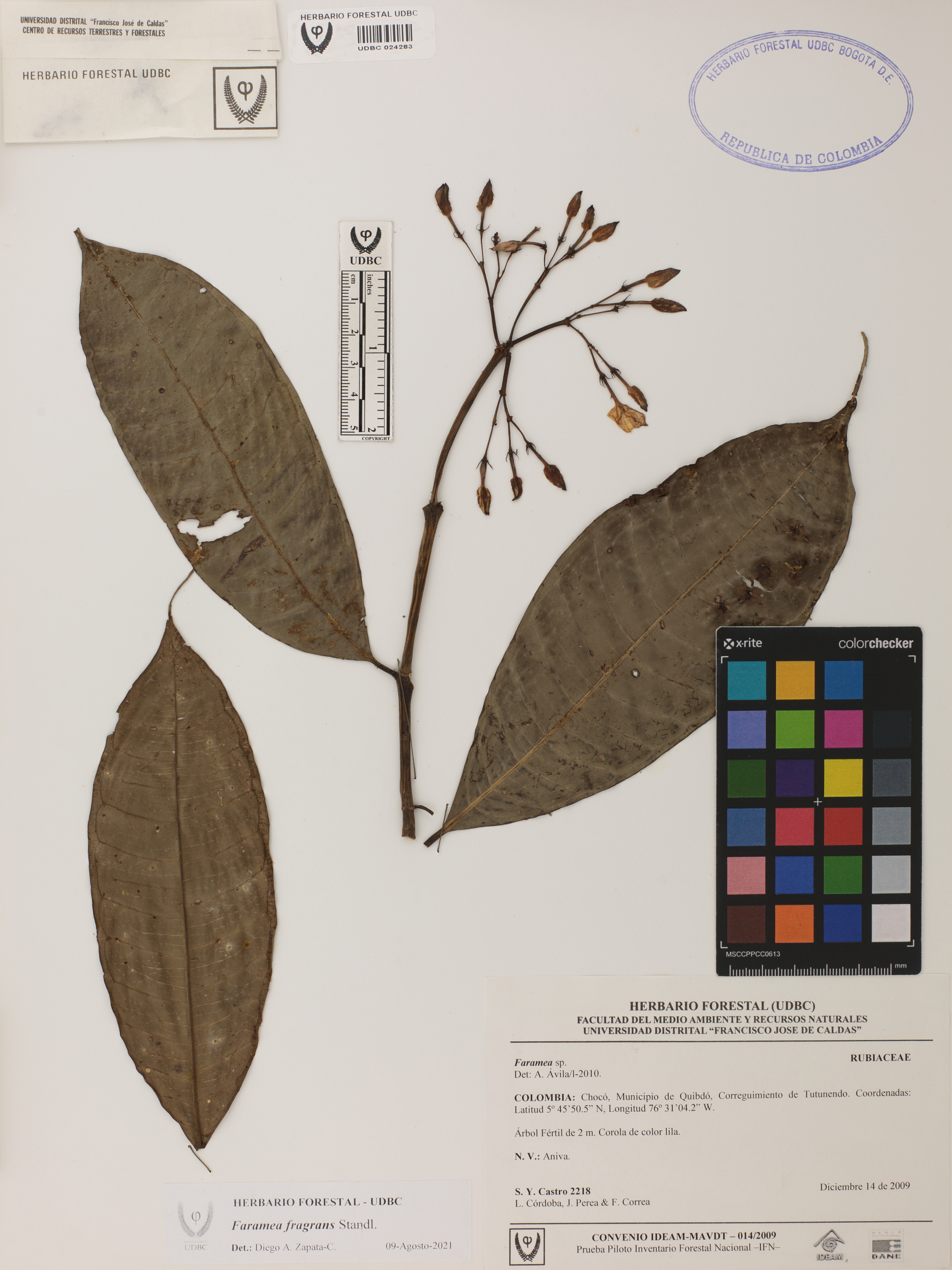 | dc.description | Fotografía del ejemplar Castro, S. 2218, determinado como Faramea fragrans en el año 2021 | |