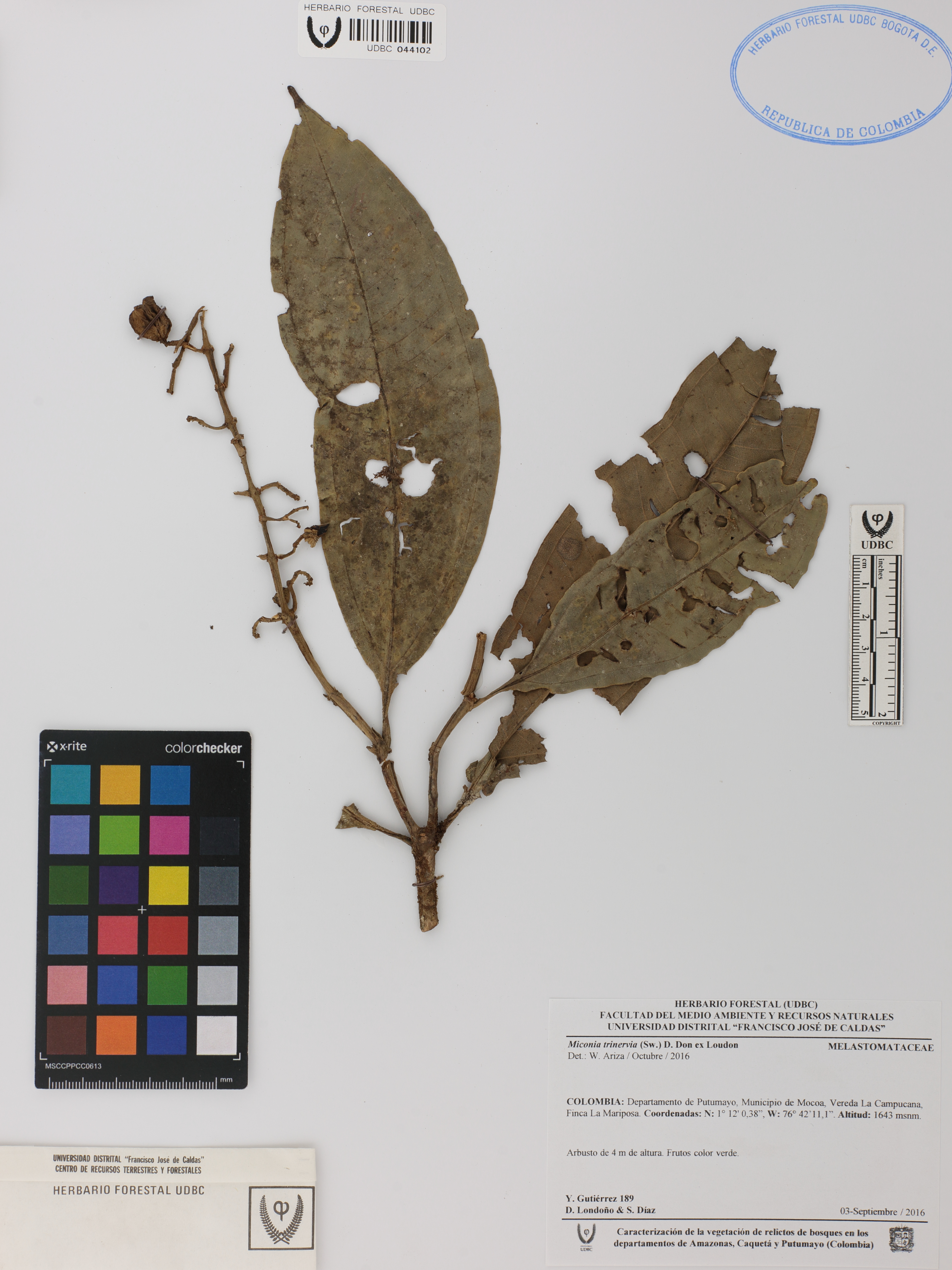 Fotografía del ejemplar Gutiérrez, Y. 189, determinado como Miconia trinervia en el año 2016