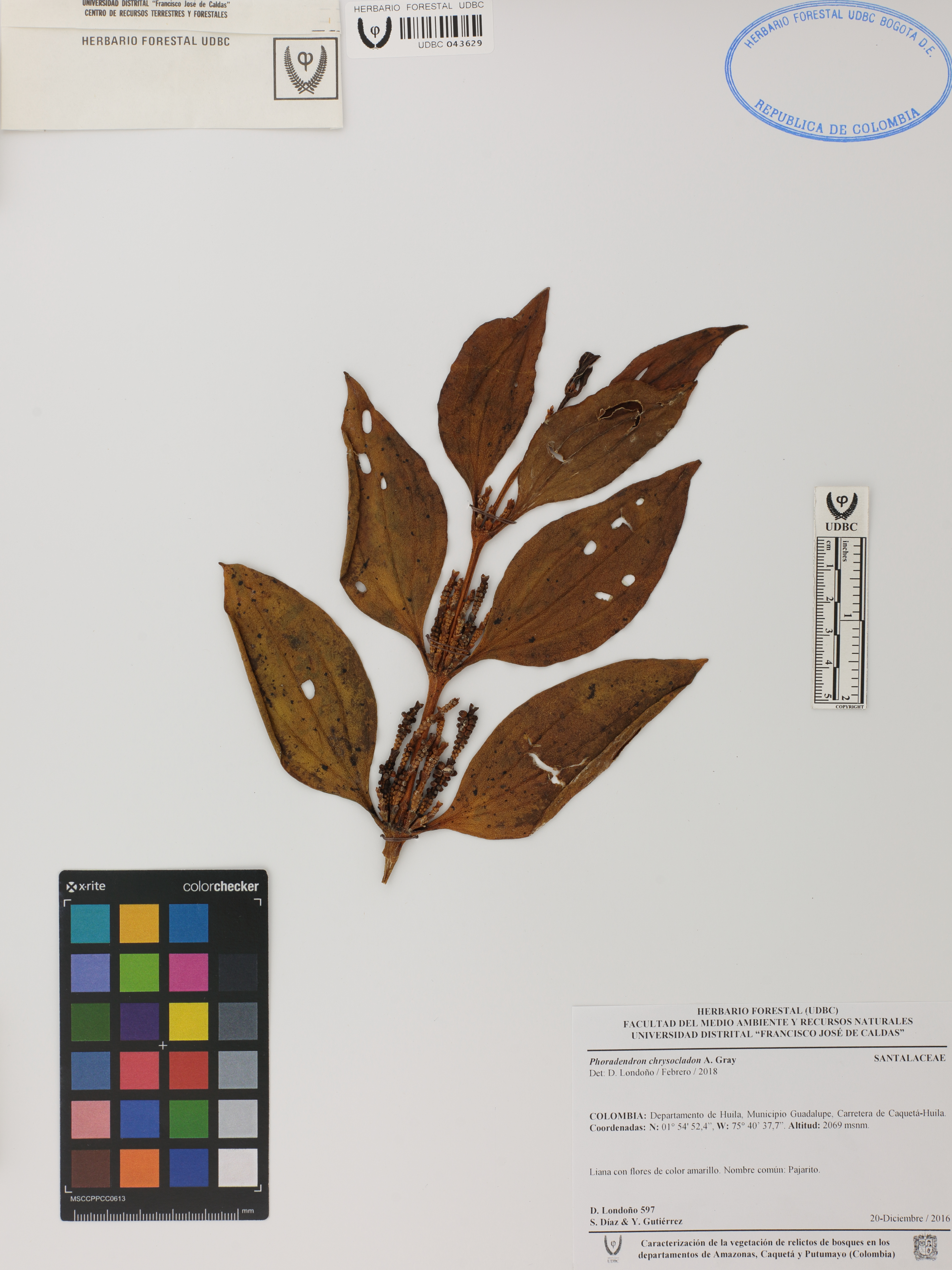 | dc.description | Fotografía del ejemplar Londoño, D. 597, determinado como Phoradendron chrysocladon en el año 2018 | |