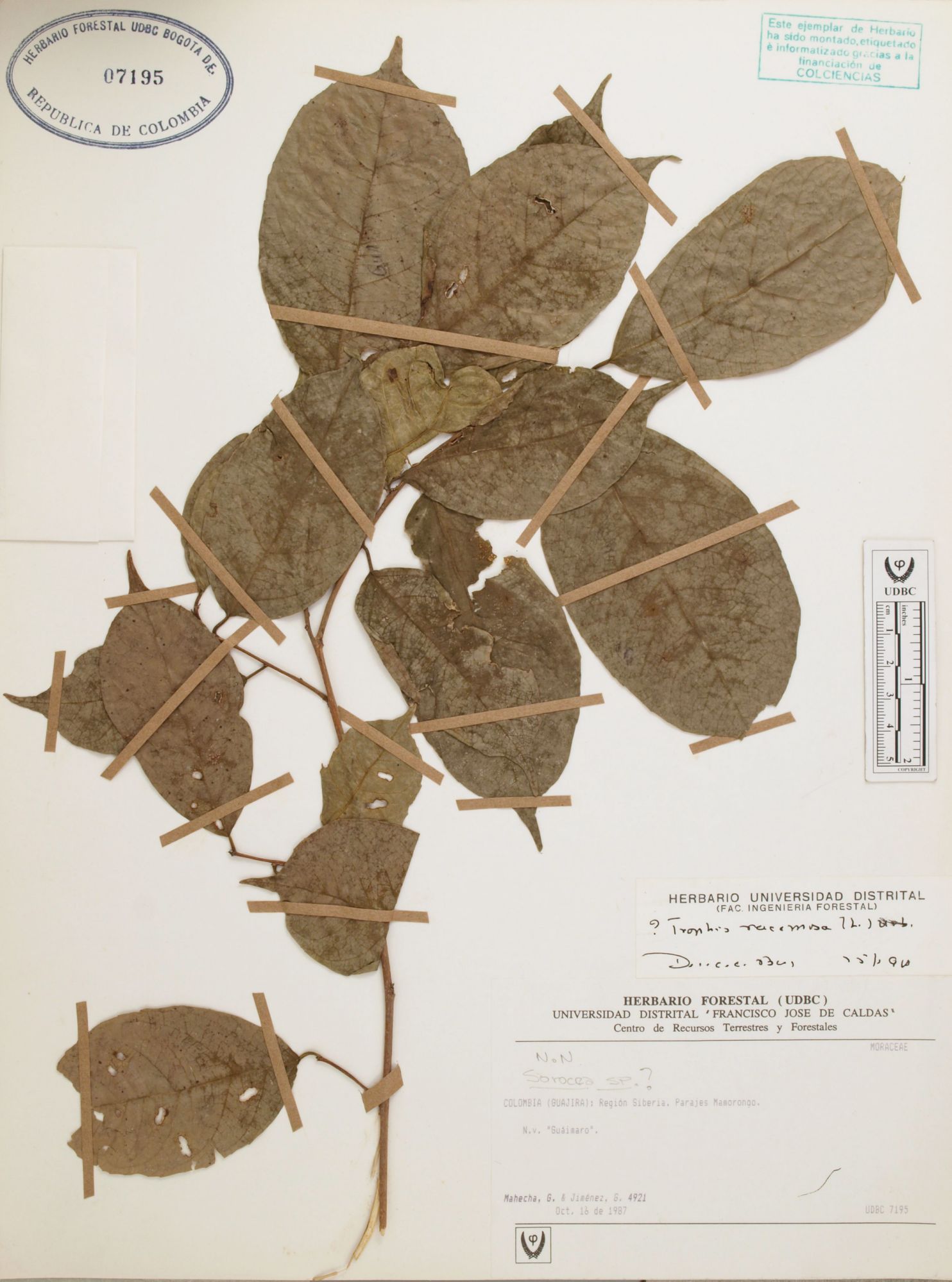 Fotografía del ejemplar Mahecha, G. 4921, determinado como Trophis racemosa en el año 1997