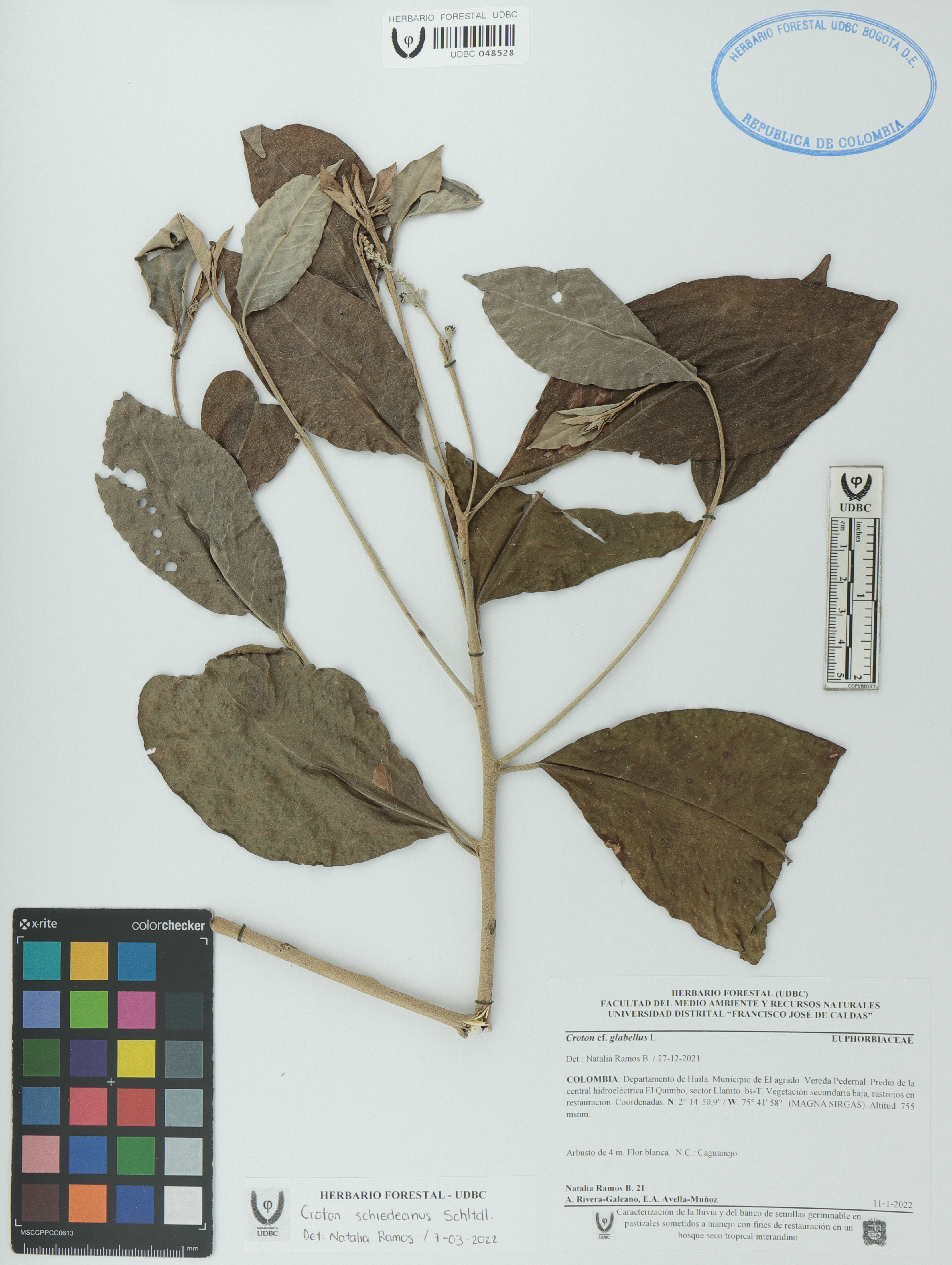 Fotografía del ejemplar Ramos-B., Natalia 21, determinado como Croton schiedeanus en el año 2022