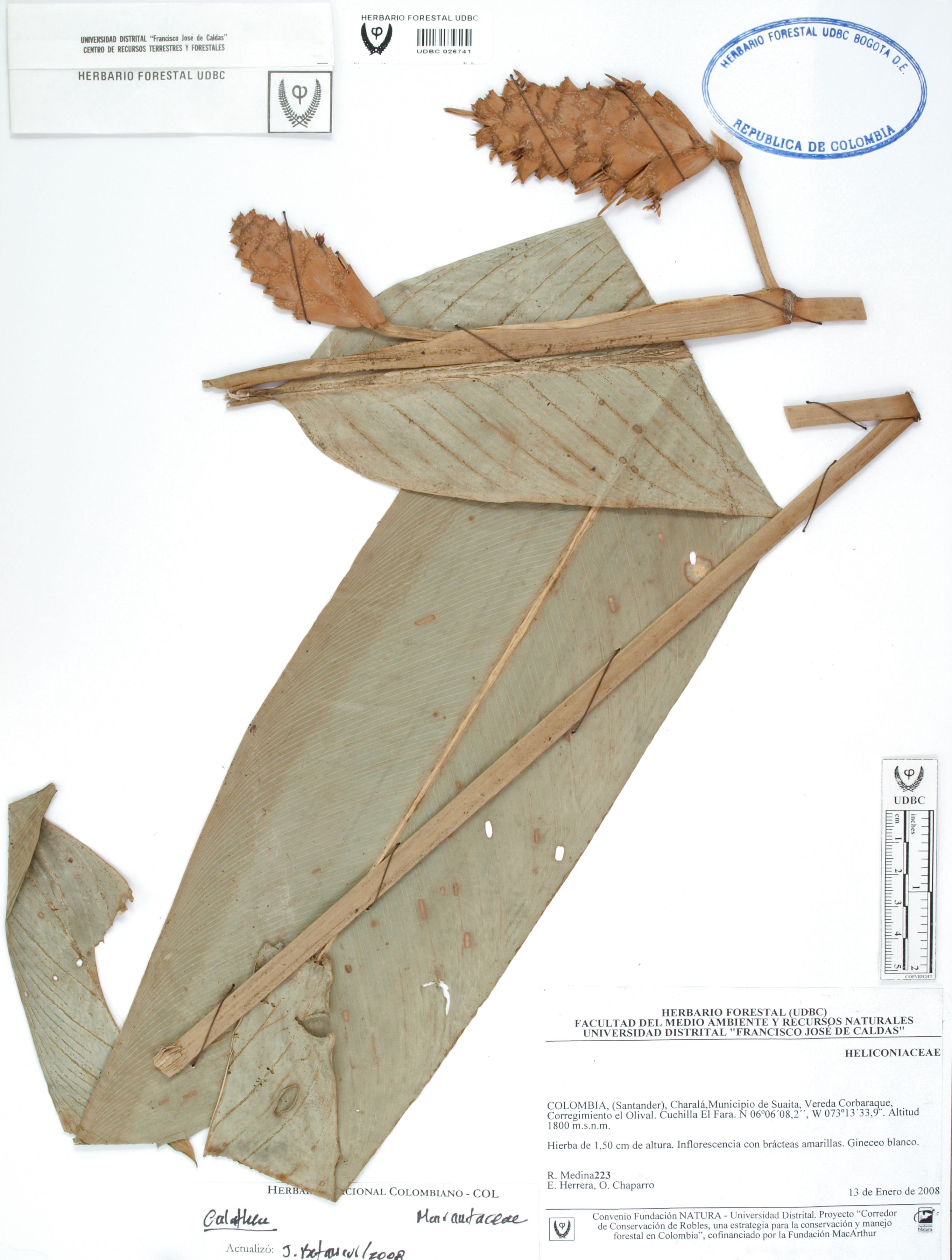 Fotografía del ejemplar Medina, R. 223, determinado como Calathea sp. en el año 2008