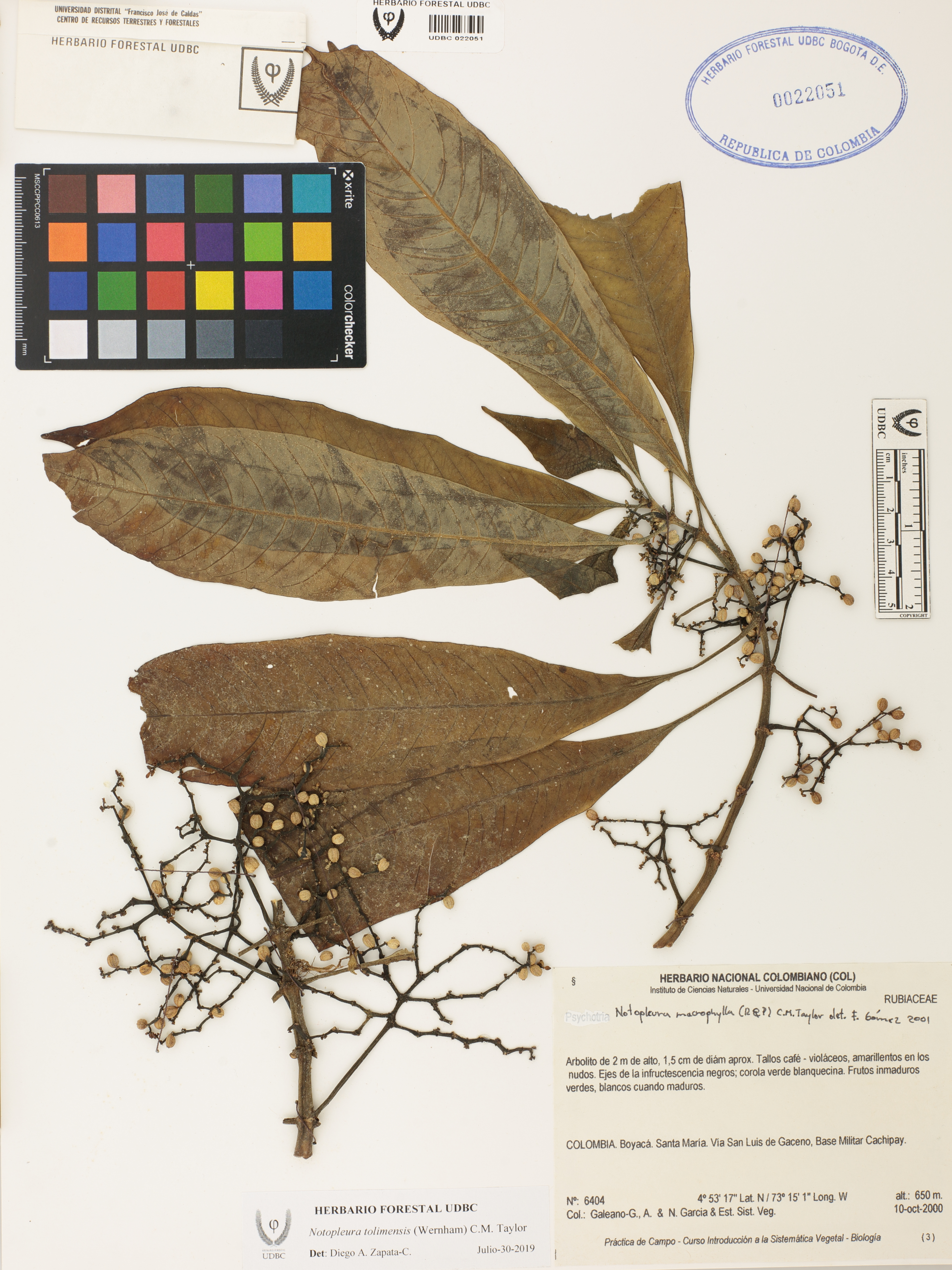 Fotografía del ejemplar Galeano, G. 6404, determinado como Notopleura tolimensis en el año 2019