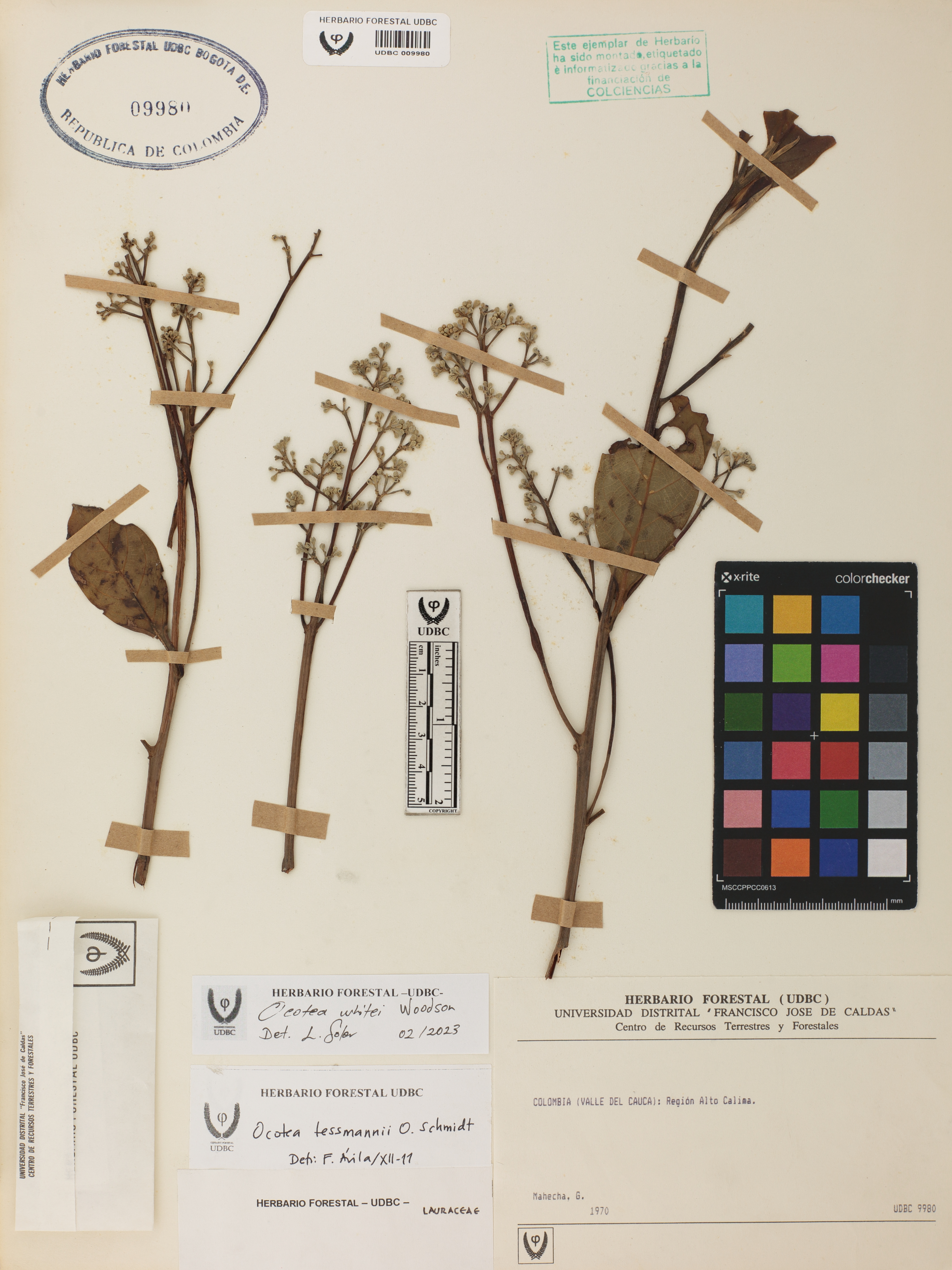 Fotografía del ejemplar Mahecha, G., determinado como Ocotea whitei en el año 2023