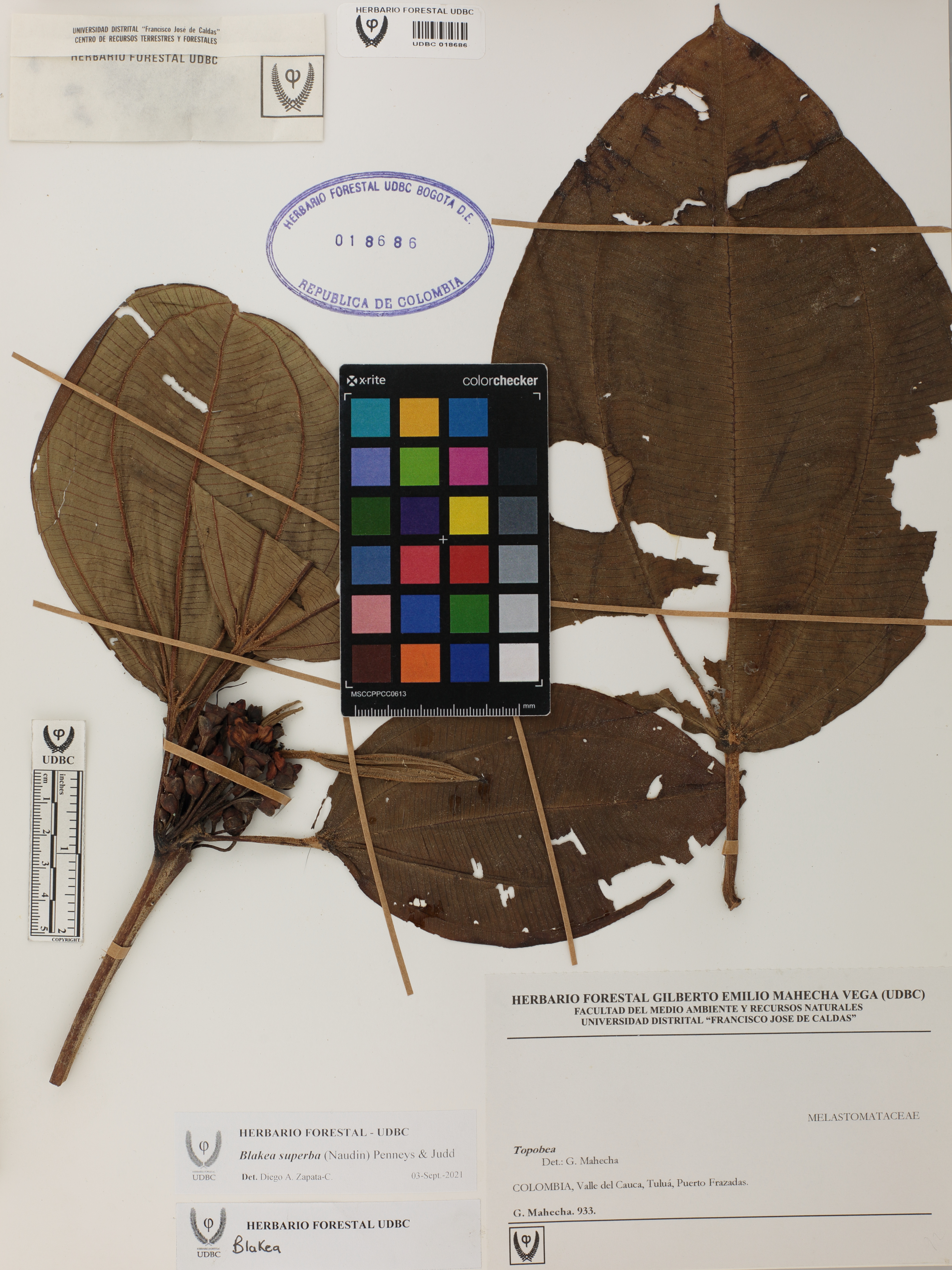 Fotografía del ejemplar Mahecha, G. 933, determinado como Blakea superba en el año 2021