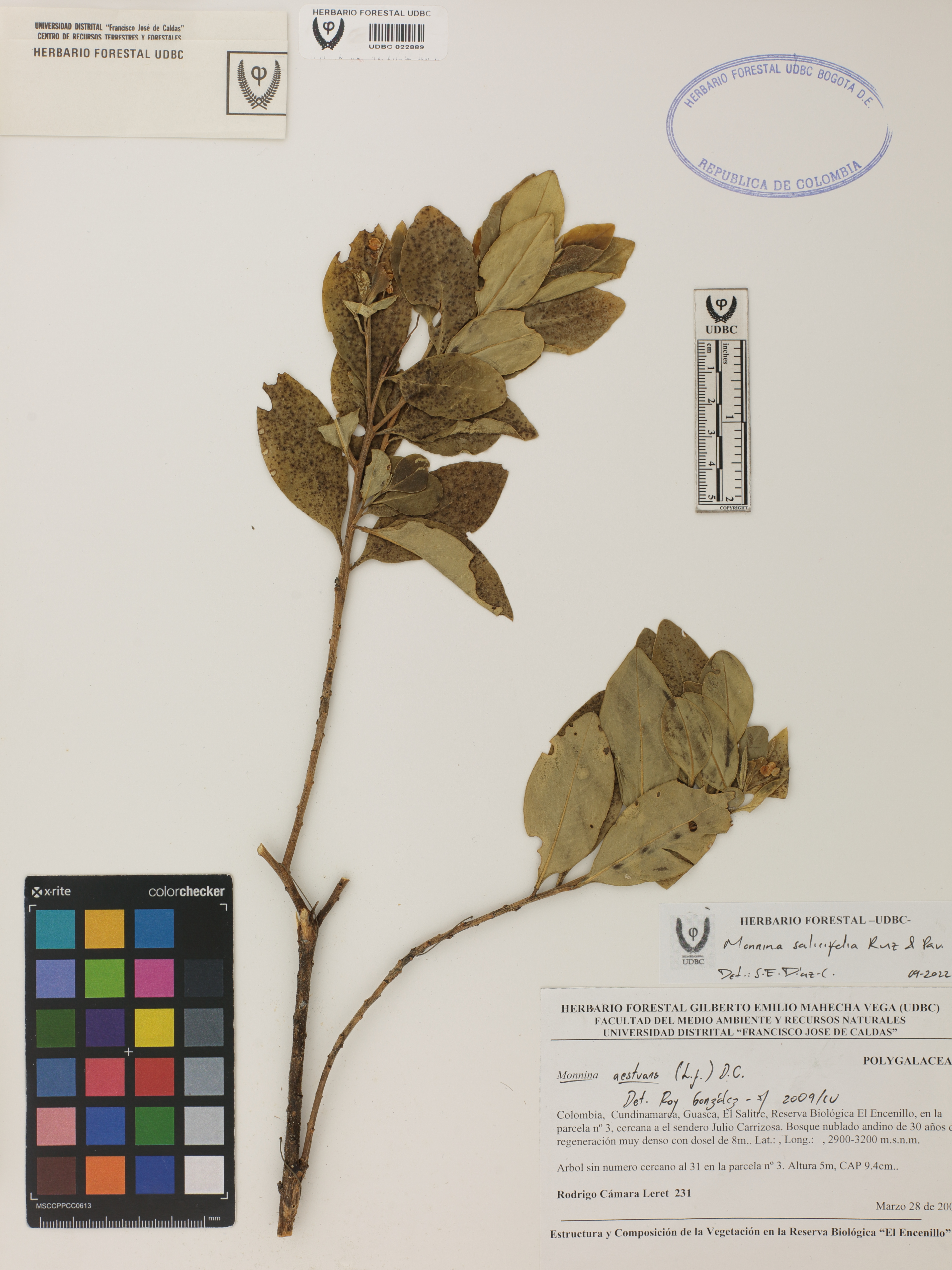 Fotografía del ejemplar Cámara, R. 231, determinado como Monnina salicifolia en el año 2022