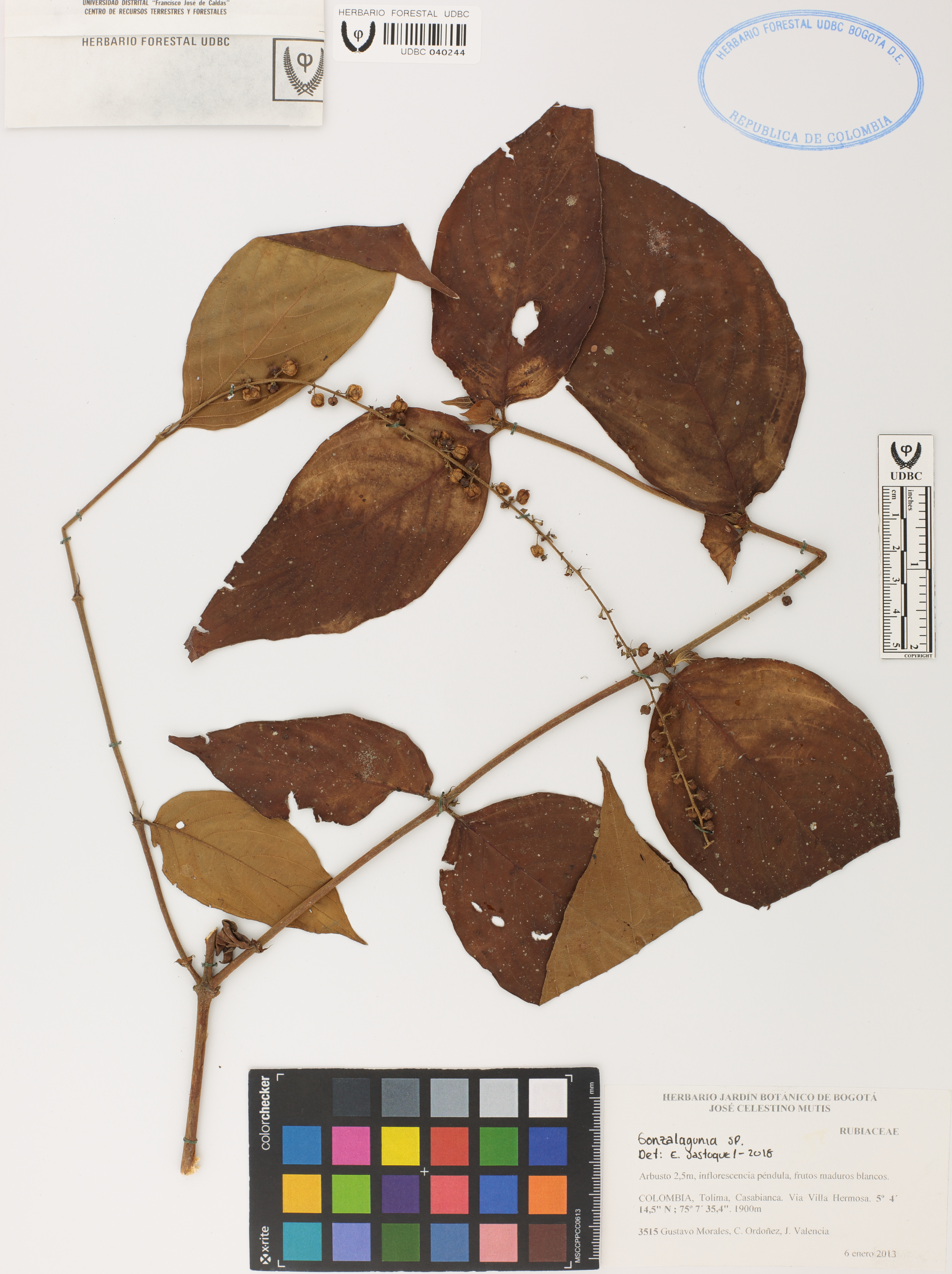 Fotografía del ejemplar Morales, G. 3515, determinado como Gonzalagunia sp. en el año 2018