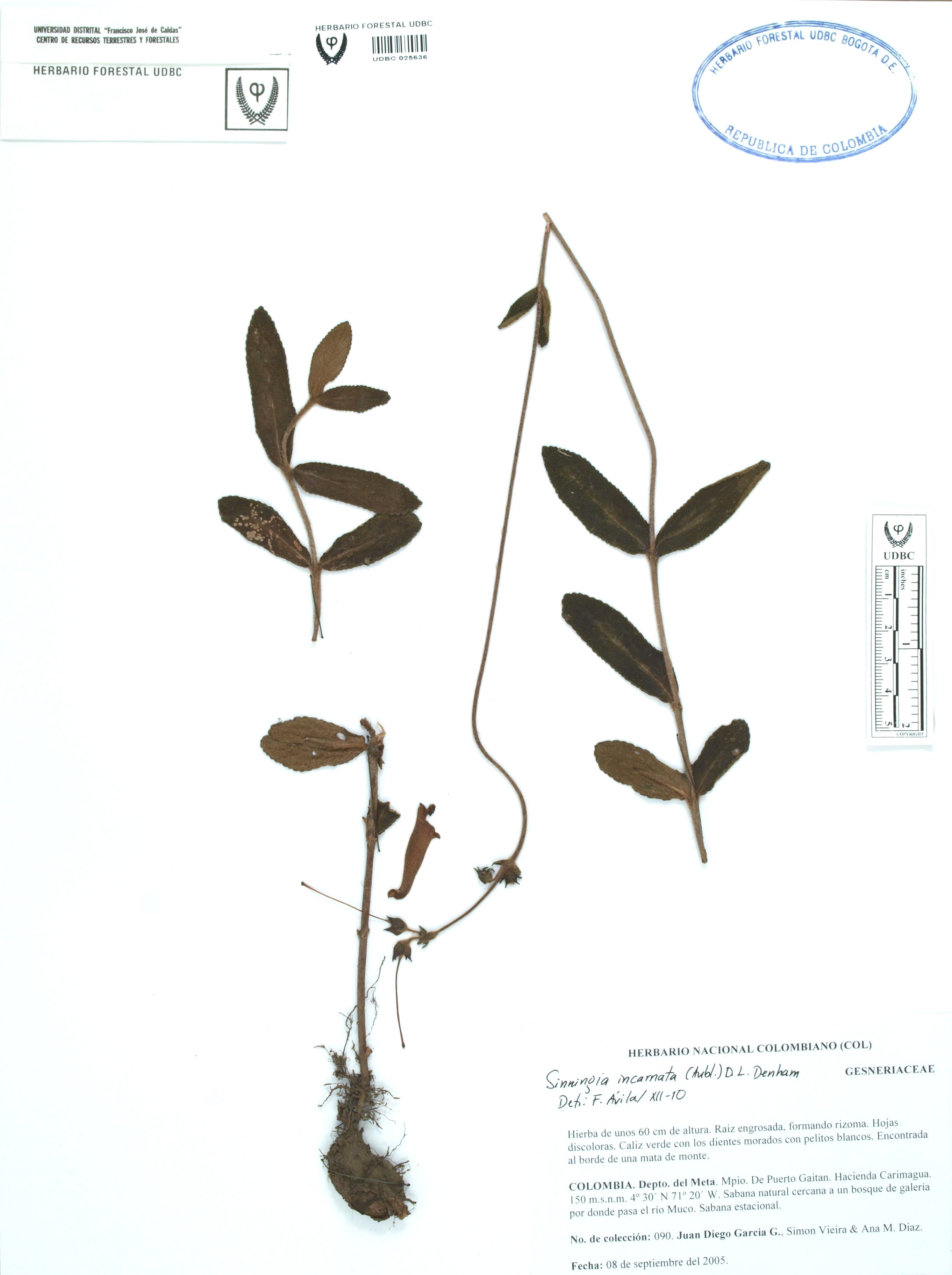 Fotografía del ejemplar García, J. 90, determinado como Sinningia incarnata en el año 2010