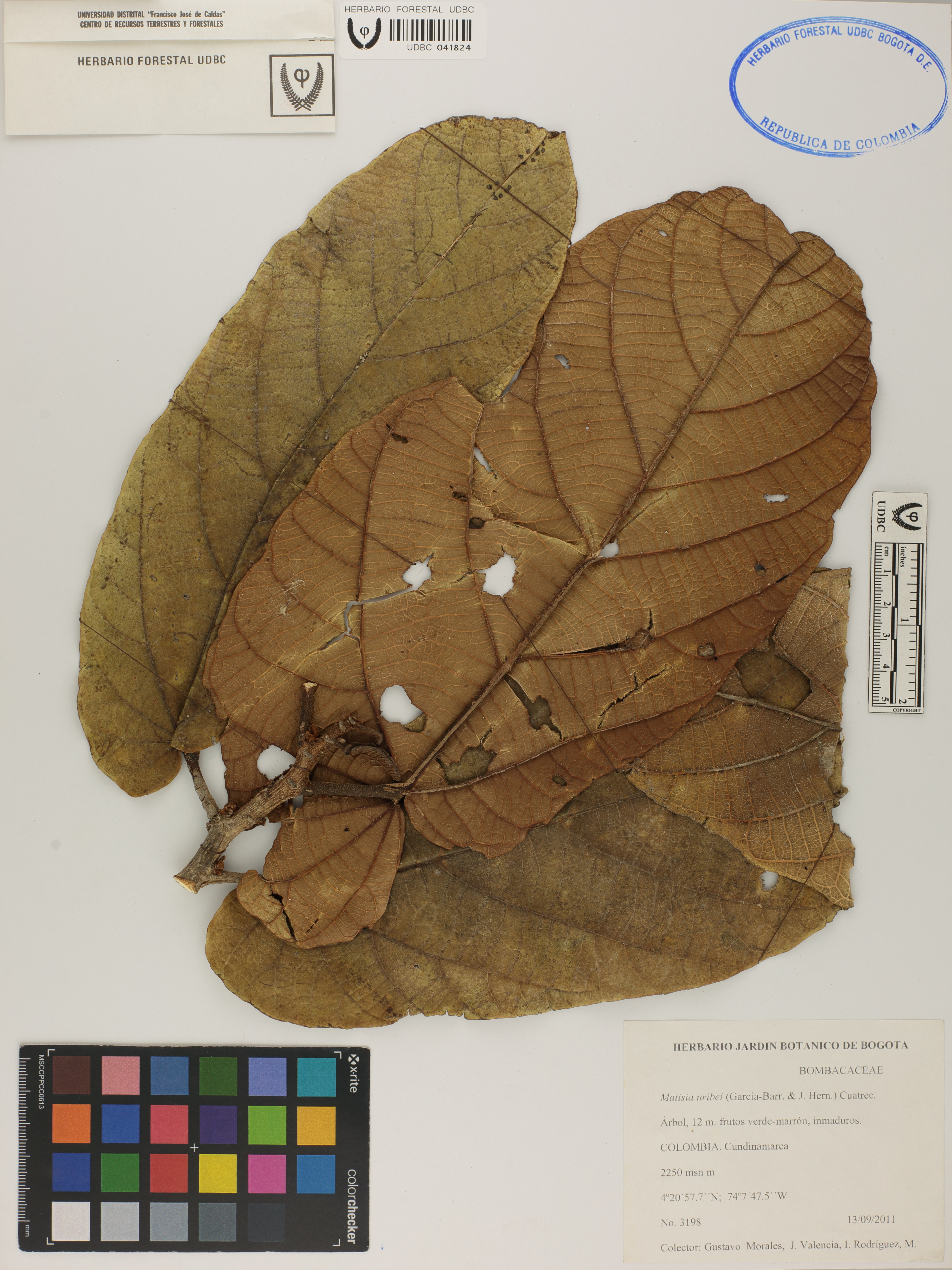 Fotografía del ejemplar Morales, G. 3198, determinado como Matisia uribei