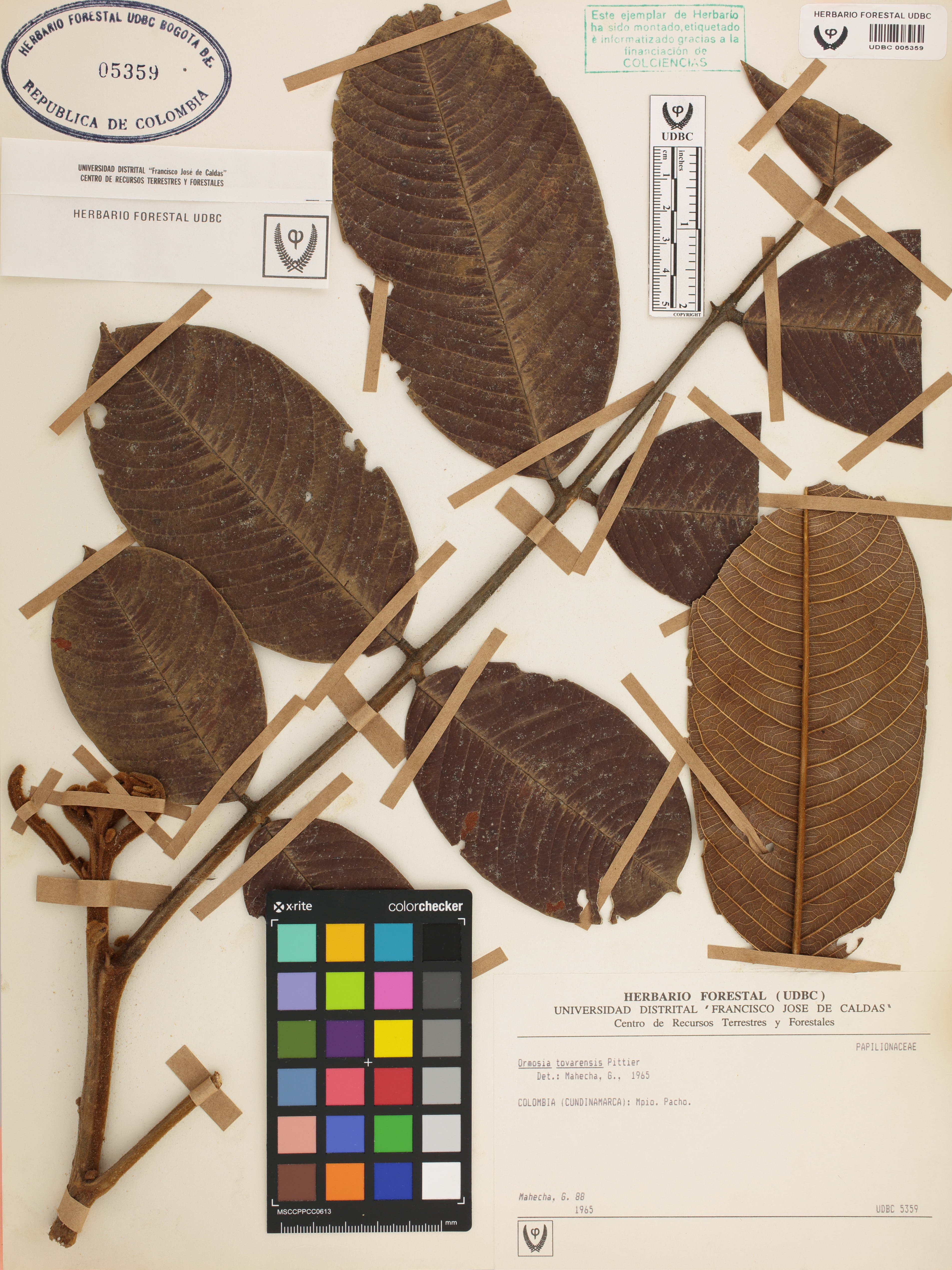 Fotografía del ejemplar Mahecha, G. 88, determinado como Ormosia tovarensis en el año 1965
