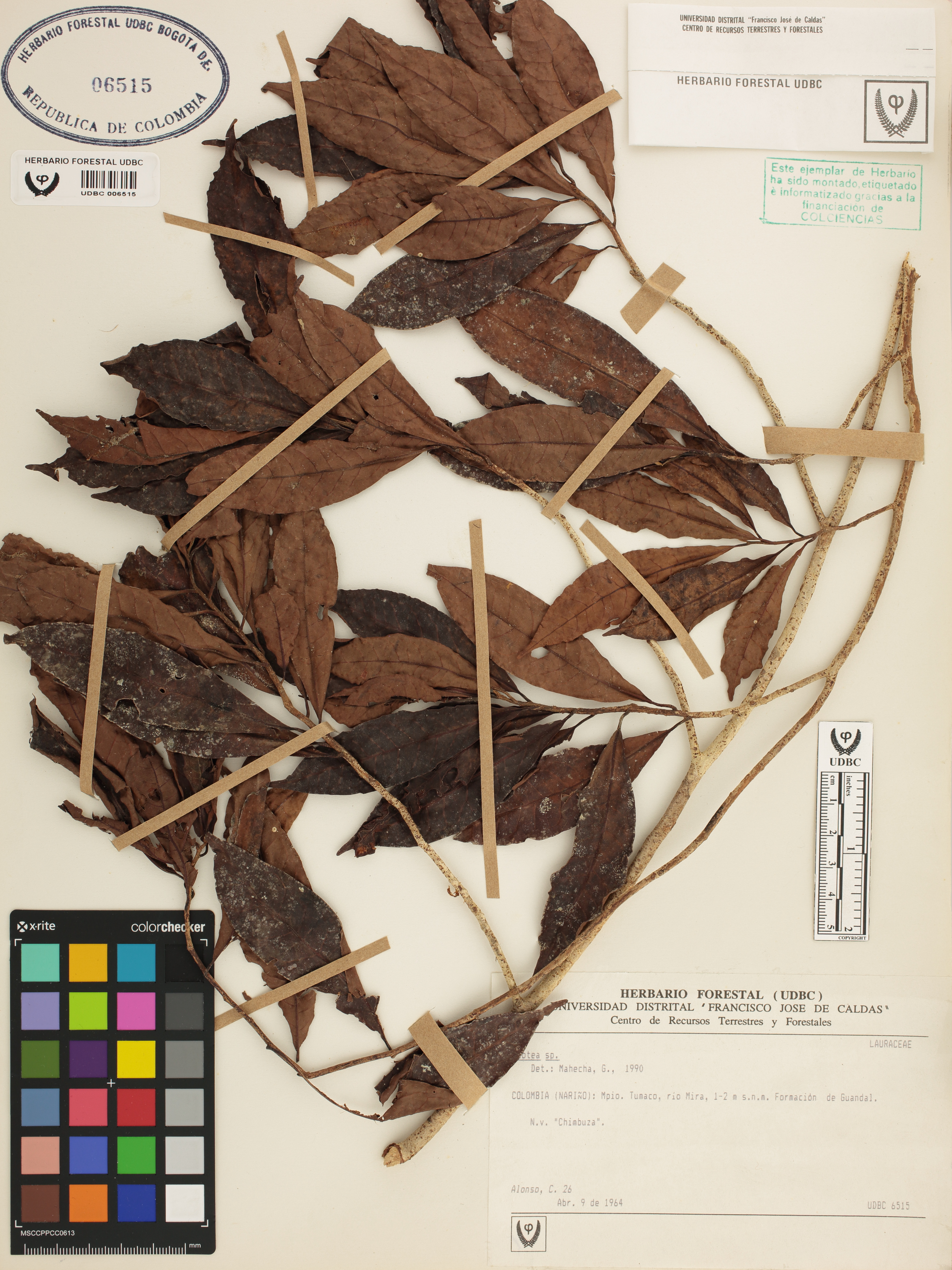Fotografía del ejemplar Alonso, C. 26, determinado como Ocotea sp. en el año 1990