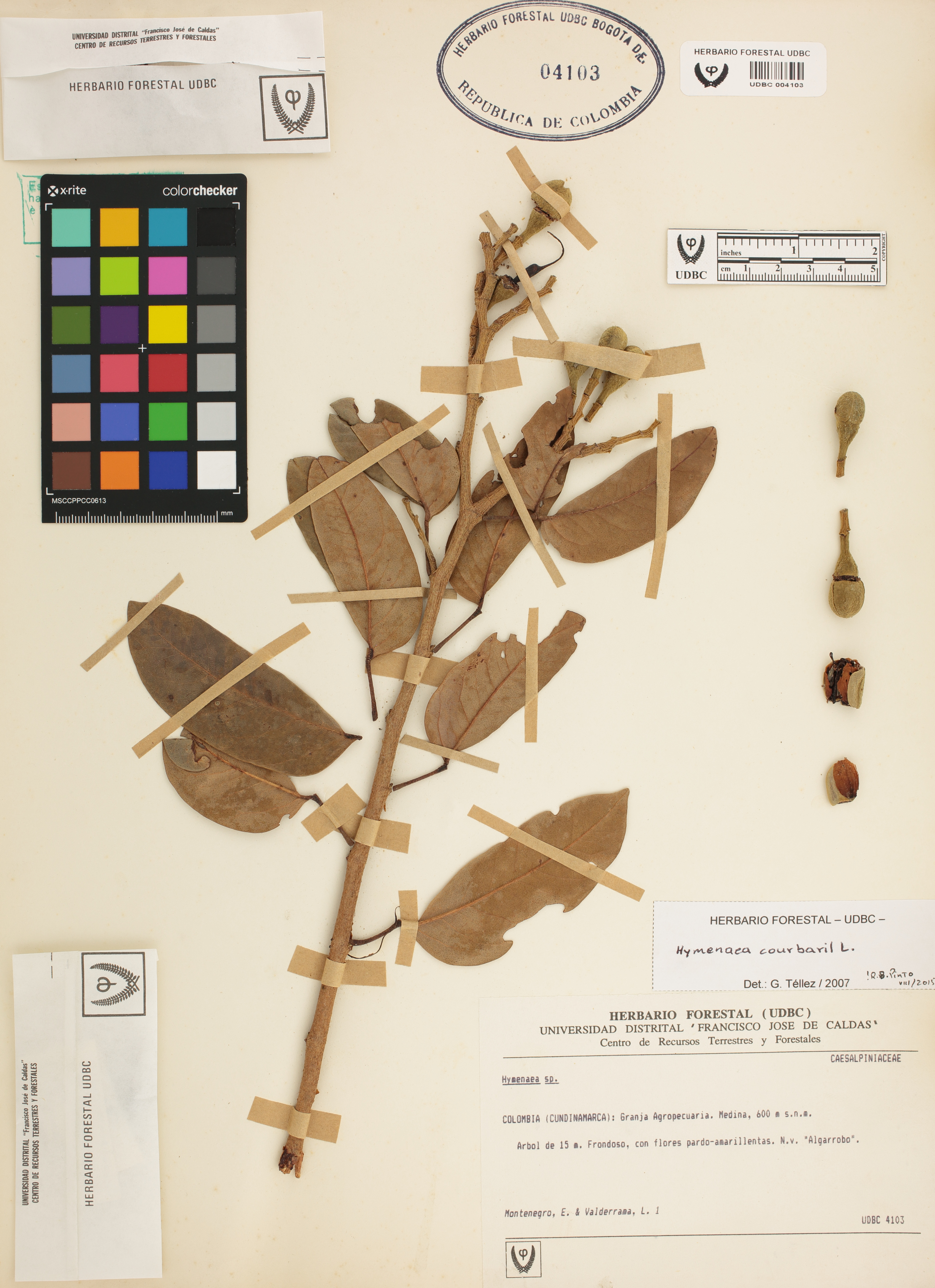 Fotografía del ejemplar Montenegro, E. 1, determinado como Hymenaea courbaril en el año 2007