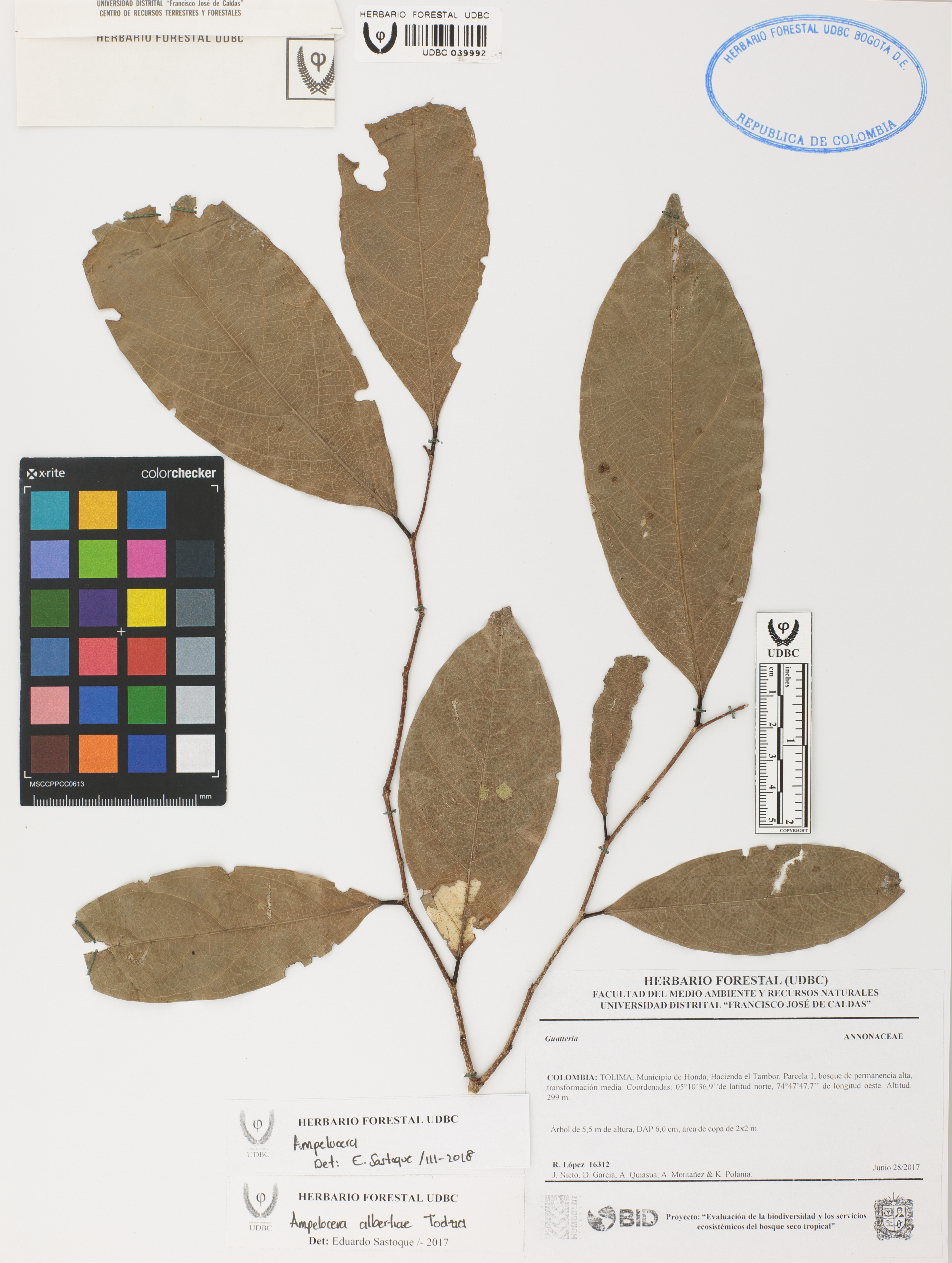 | dc.description | Fotografía del ejemplar López, R. 16312, determinado como Ampelocera sp. en el año 2018 | |