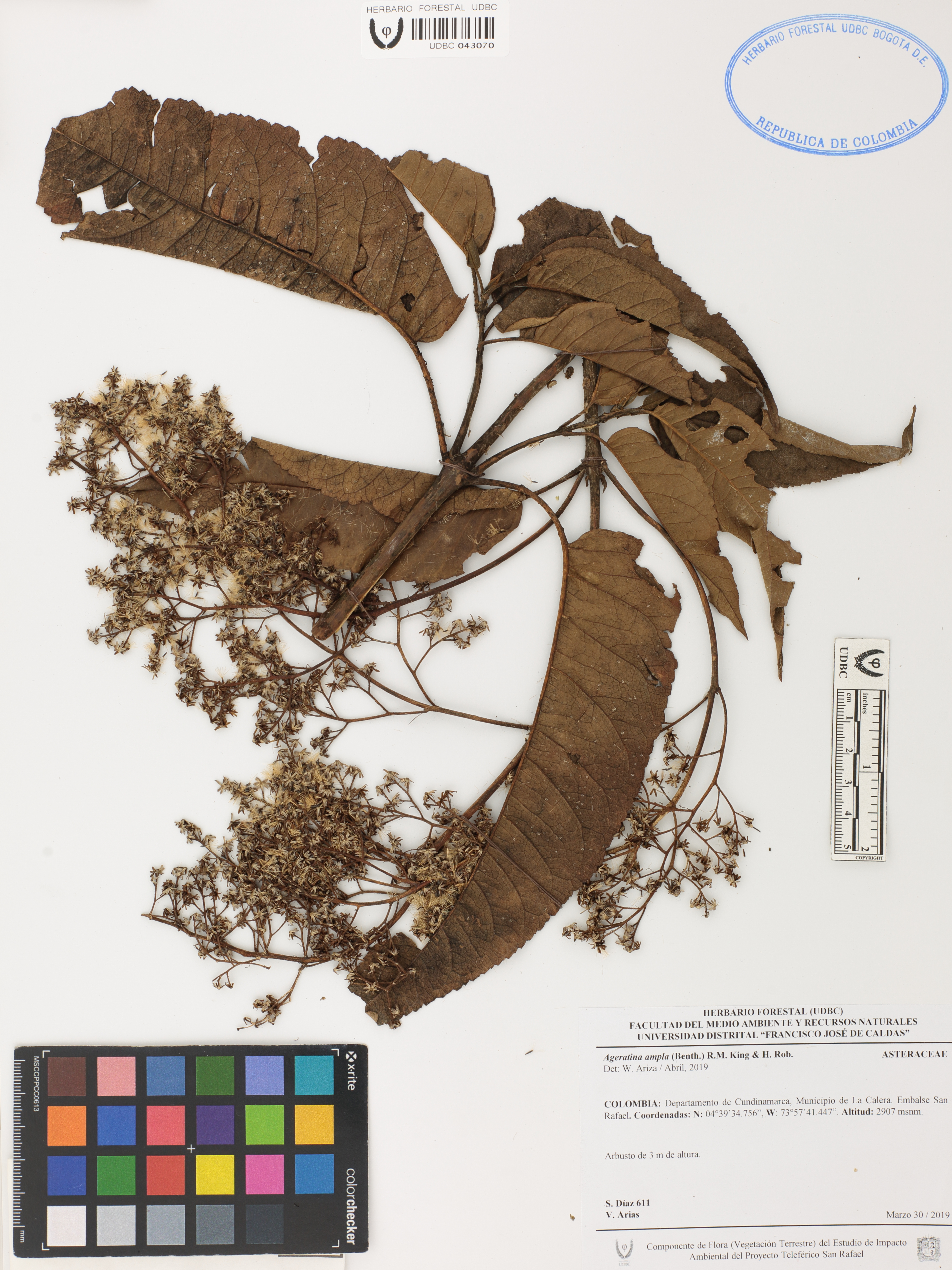 Fotografía del ejemplar Díaz, S. 611, determinado como Ageratina ampla en el año 2019