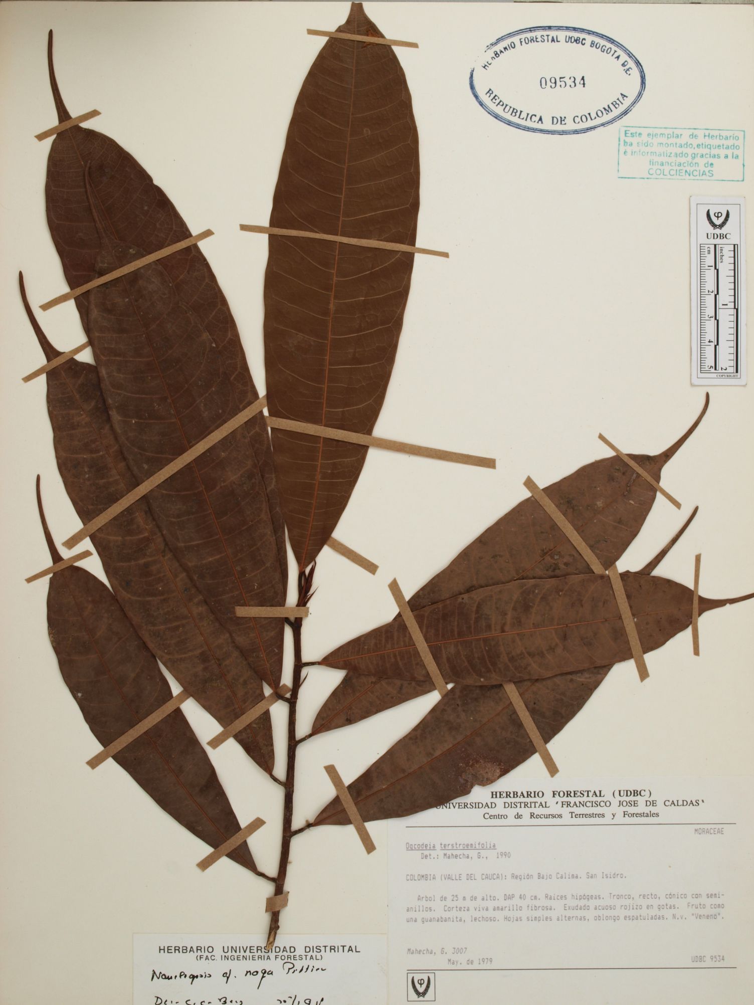 Fotografía del ejemplar Mahecha, G. 3007, determinado como Naucleopsis naga en el año 1997