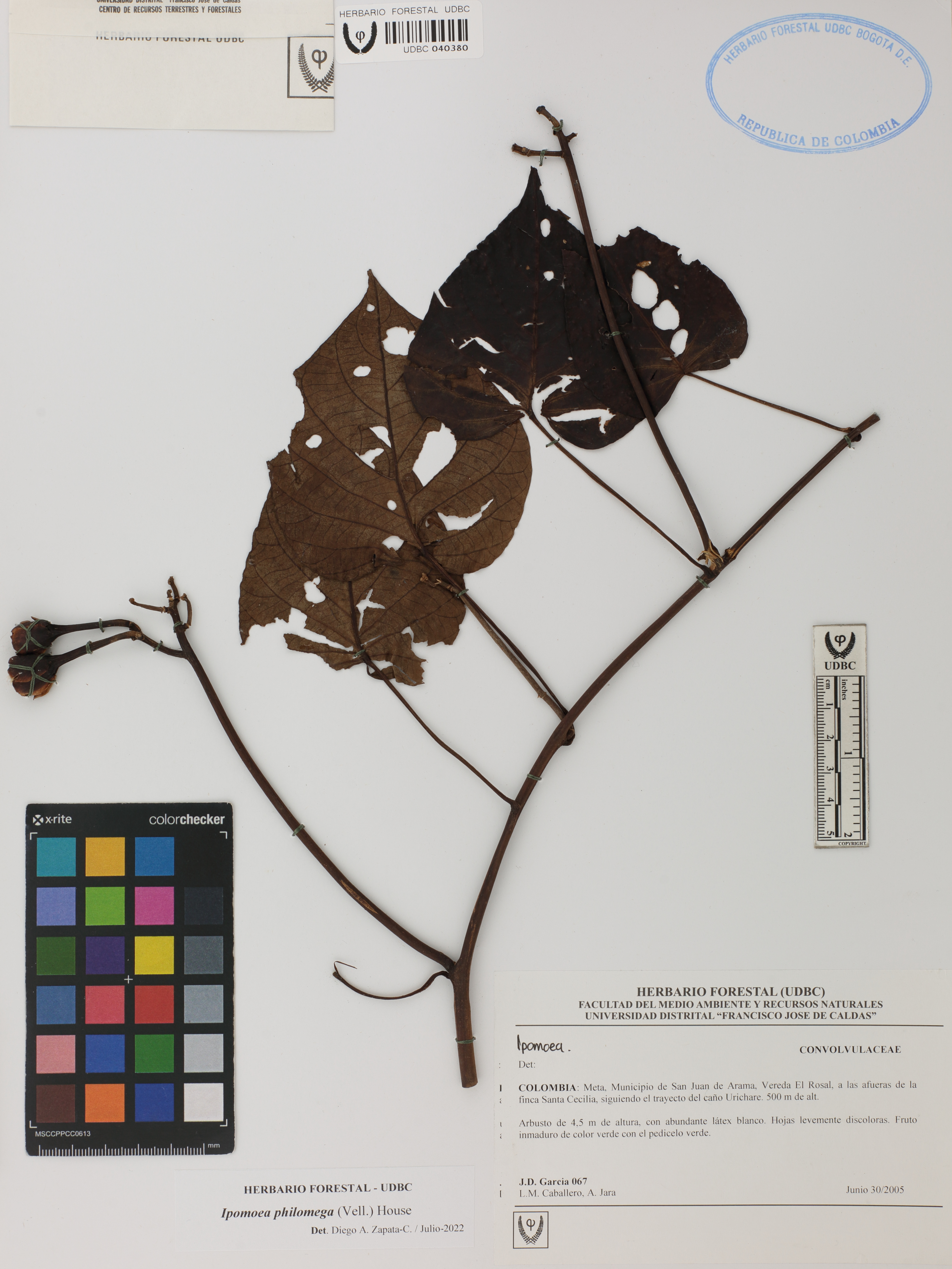 | dc.description | Fotografía del ejemplar García, J. 67, determinado como Ipomoea philomega en el año 2022 | |